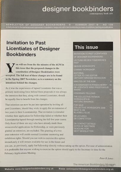 Designer Bookbinders newsletter; No.139; Summer 2007Entry/Object ID