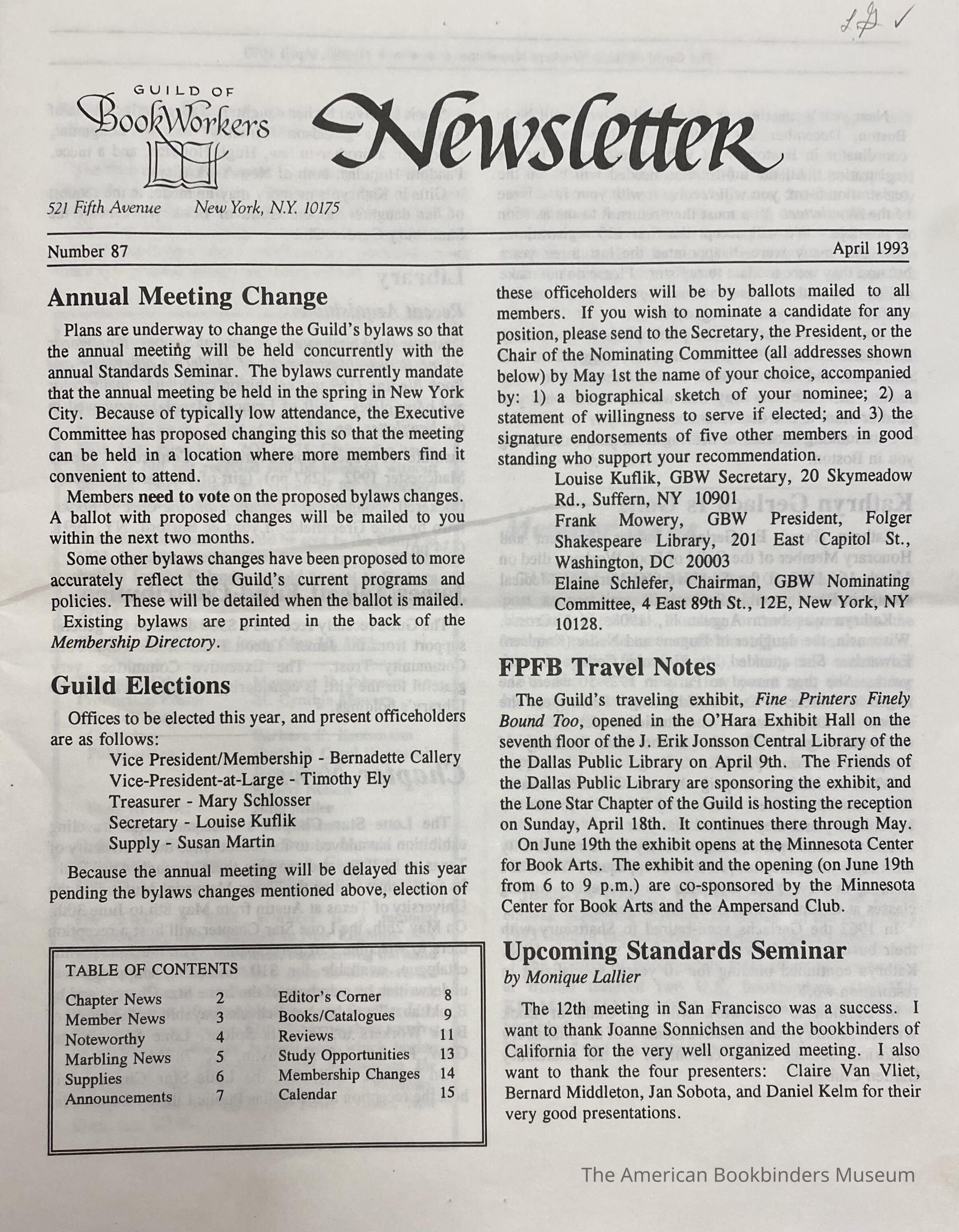 Guild of Book Workers Newsletter ; No. 87, April 1993Entry/Object ID