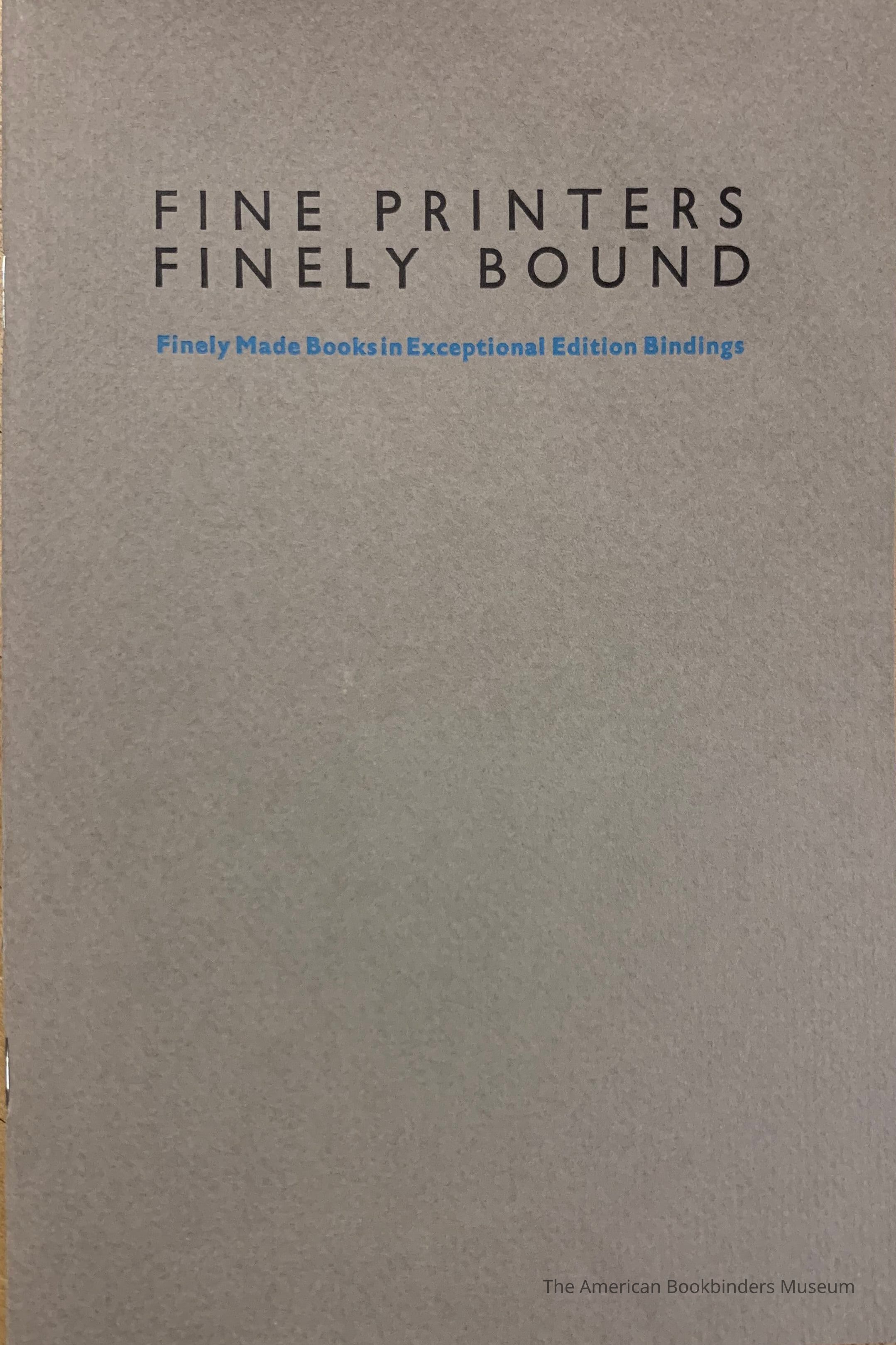 Fine printers finely bound : finely made books in exceptional edition bindings / selected by Ken Botnick & Steve Miller of Red Ozier Press for the Guild of Book Workers ; the Thomas J. Watson Library at the Metropolitan Museum of Art, New York City, 2 December 1986-2 January 1987.