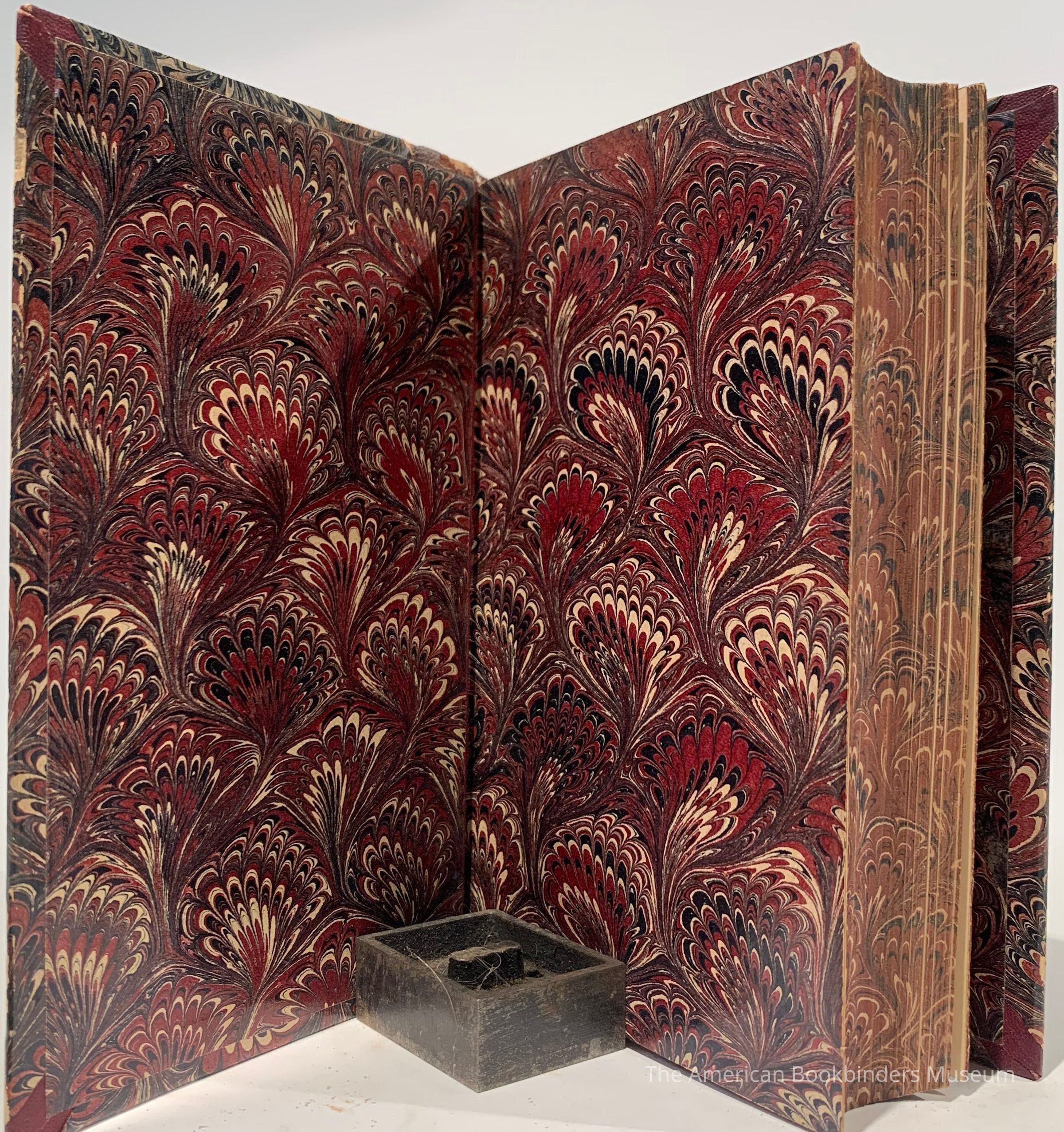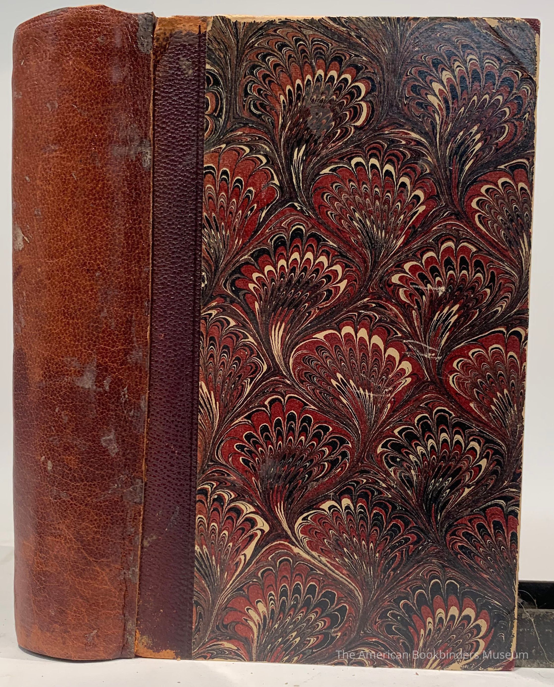 Spine in maroon leather; boards, endpapers and edges in natching marbling