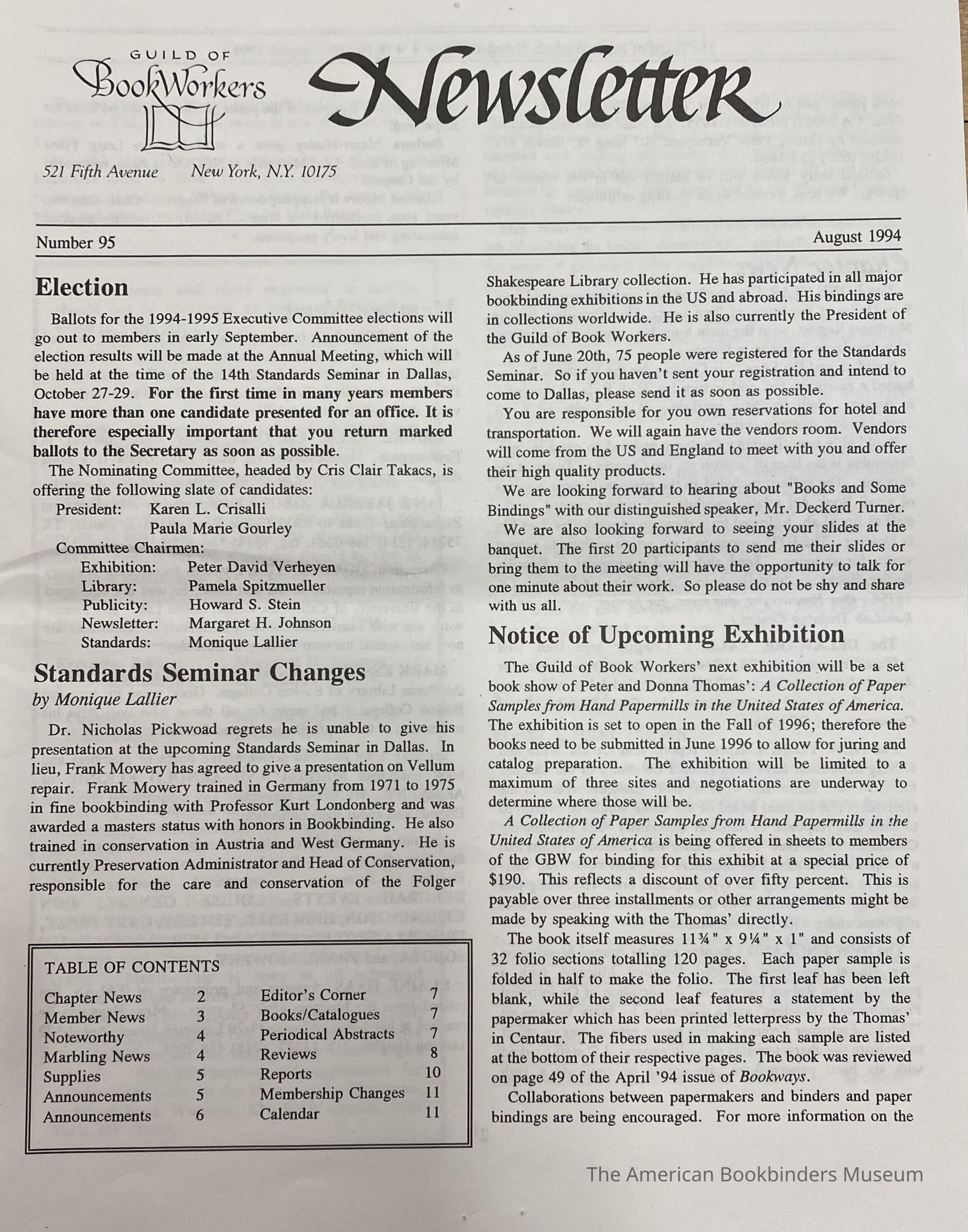 Guild of Book Workers Newsletter ; No. 95 , August 1994Entry/Object ID
