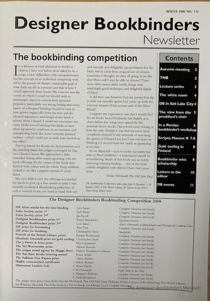 Designer Bookbinders newsletter; No.113; Winter 2000Entry/Object ID