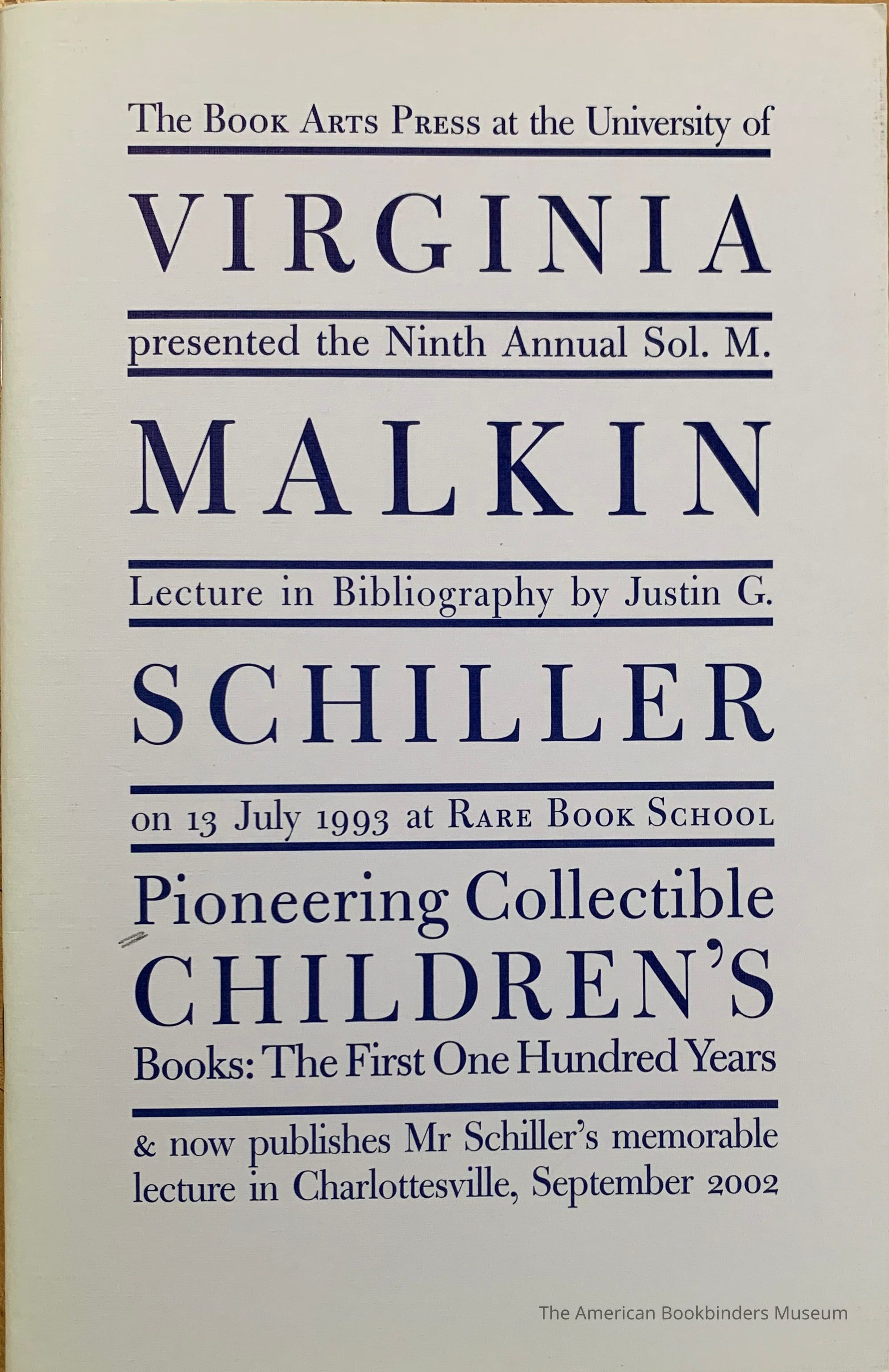 Pioneering collectible children's books : the first one hundred years / by Justin G. Schiller.Entry/Object ID