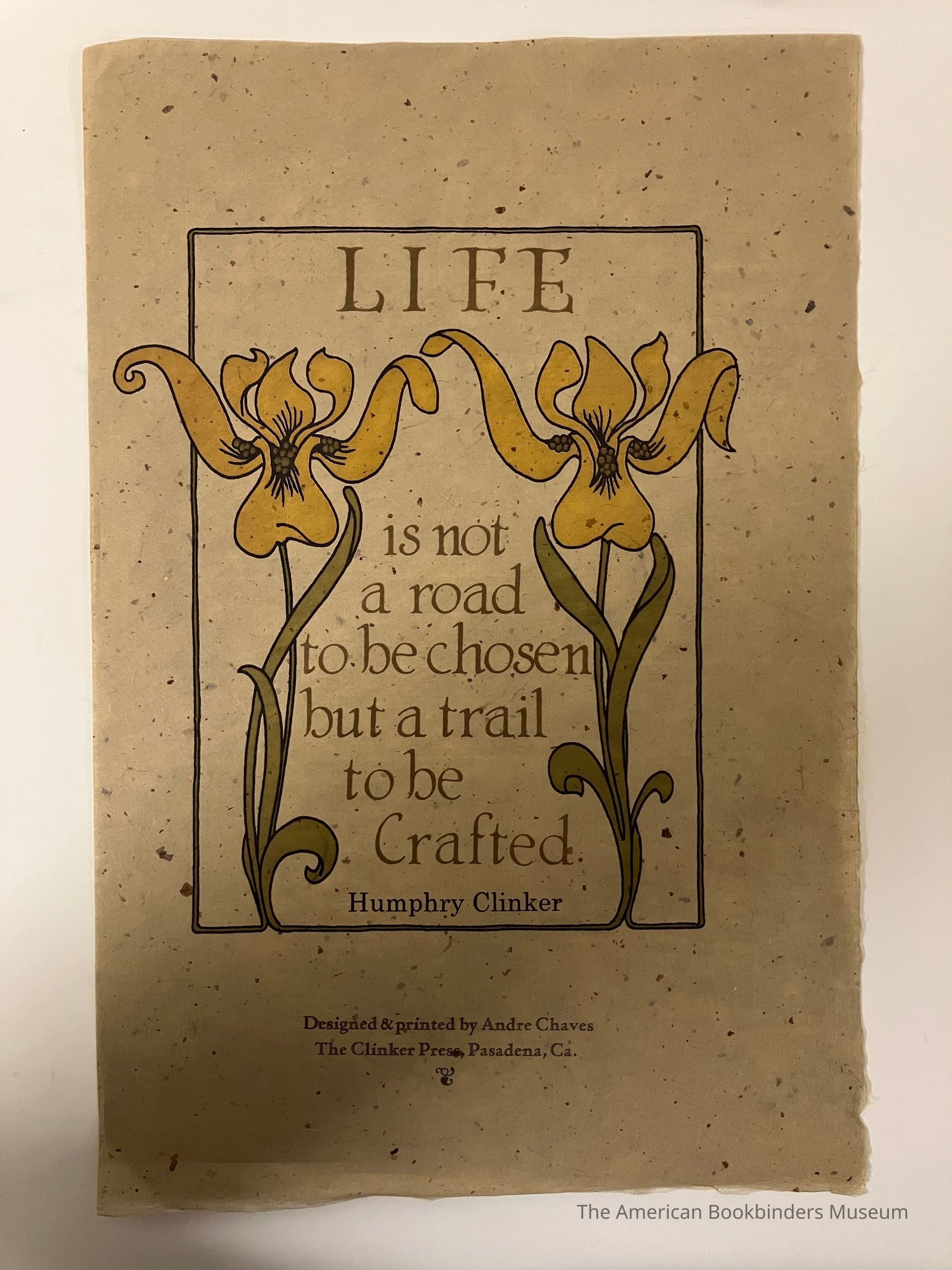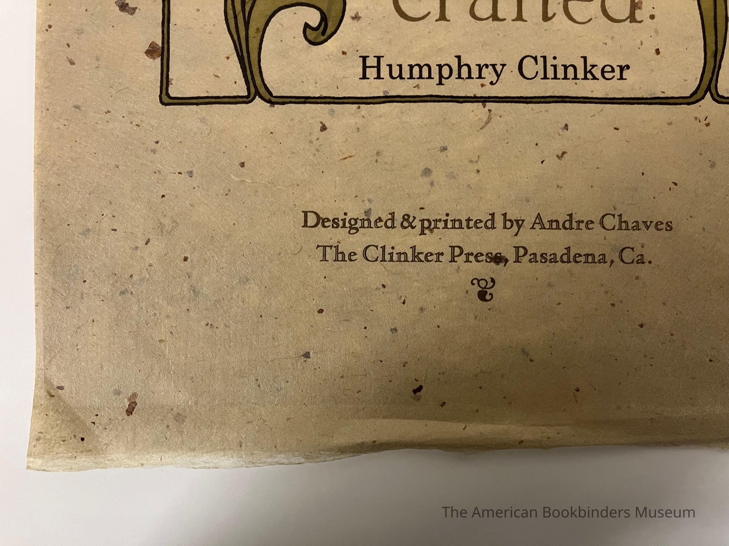 Humphry Clinker doesn't appear to be a real person, so authorship unclear. Designed & printed by Andre Chaves.Dimensions