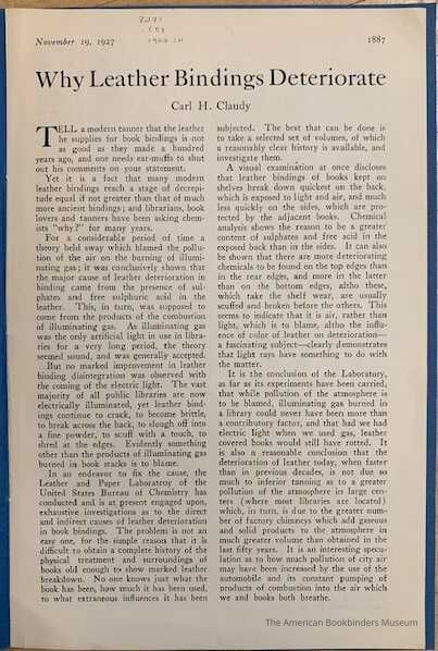 Leather bindings (Bookbinding), Conservation and restoration.Book Details