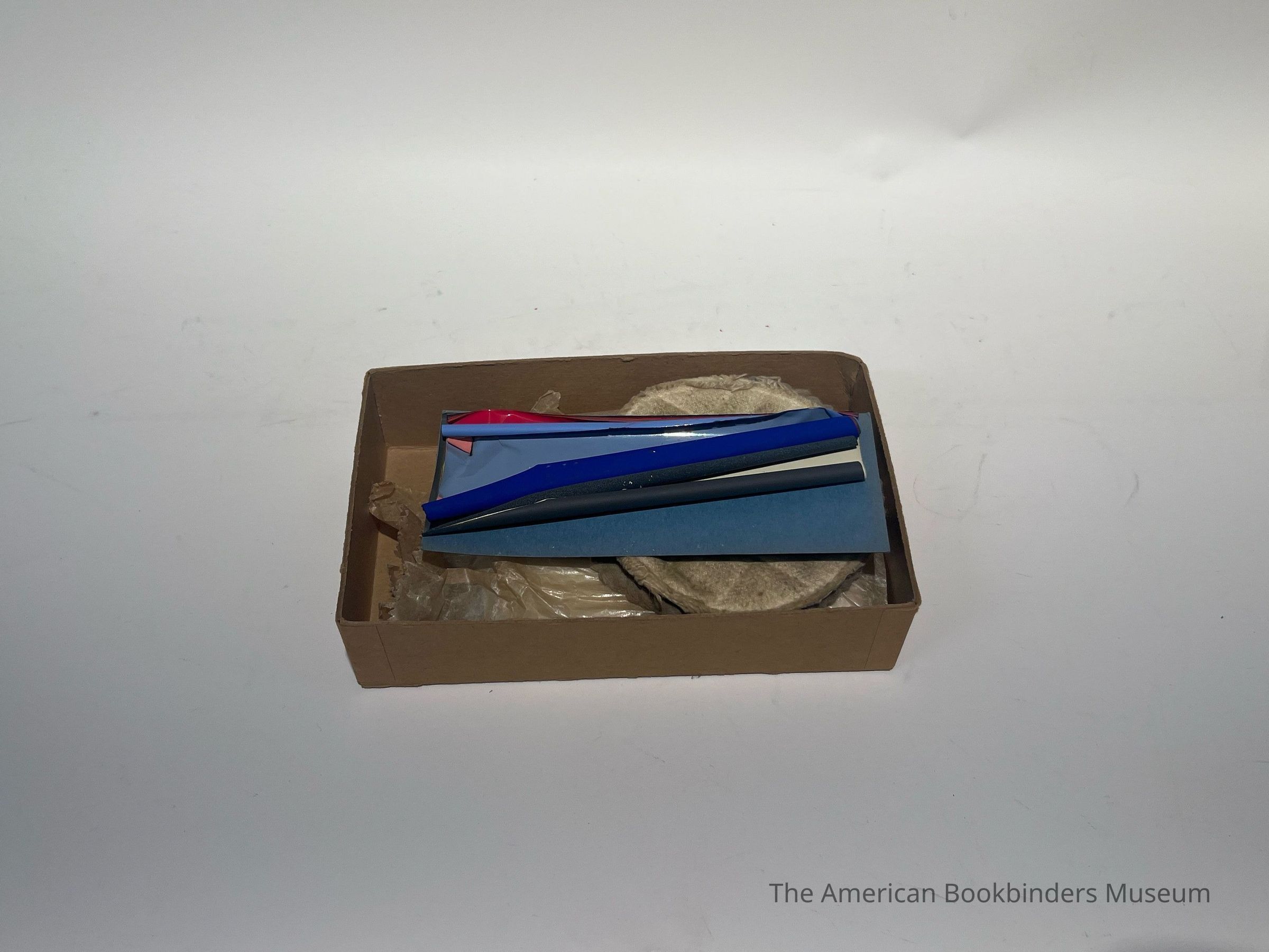 Box holding cleaning fabric and sample foils for Kingsley Machine