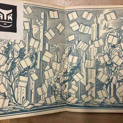 247p. Endpapers show books. falling from the sky, in front of trees with skyscrapers in the background, with birds flying between the books. Introduction by Mark van Doren.Book Details