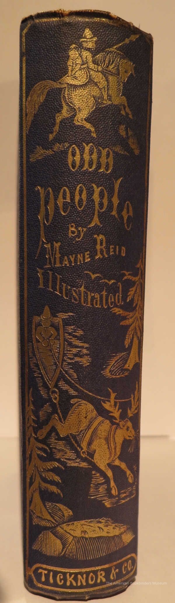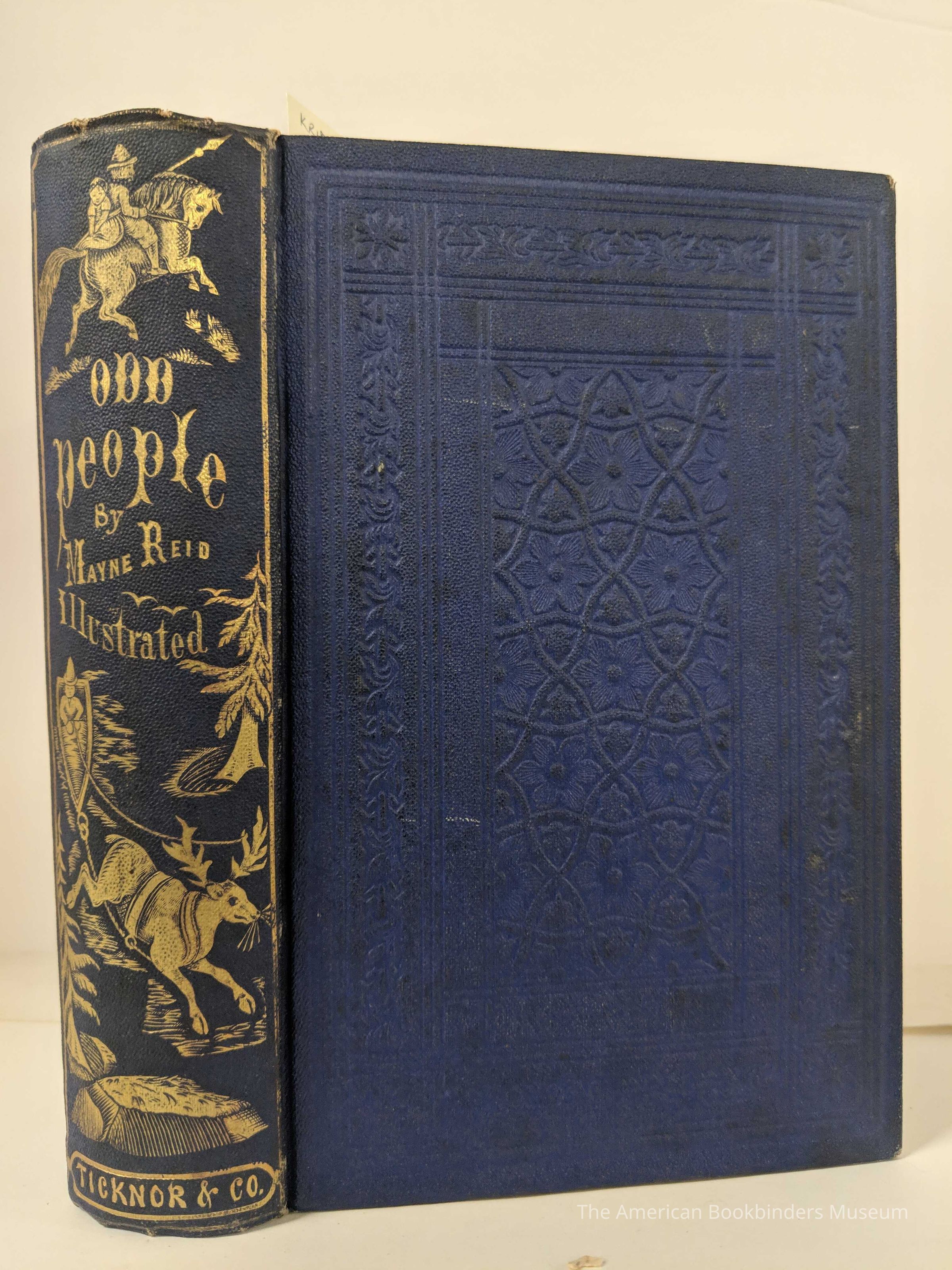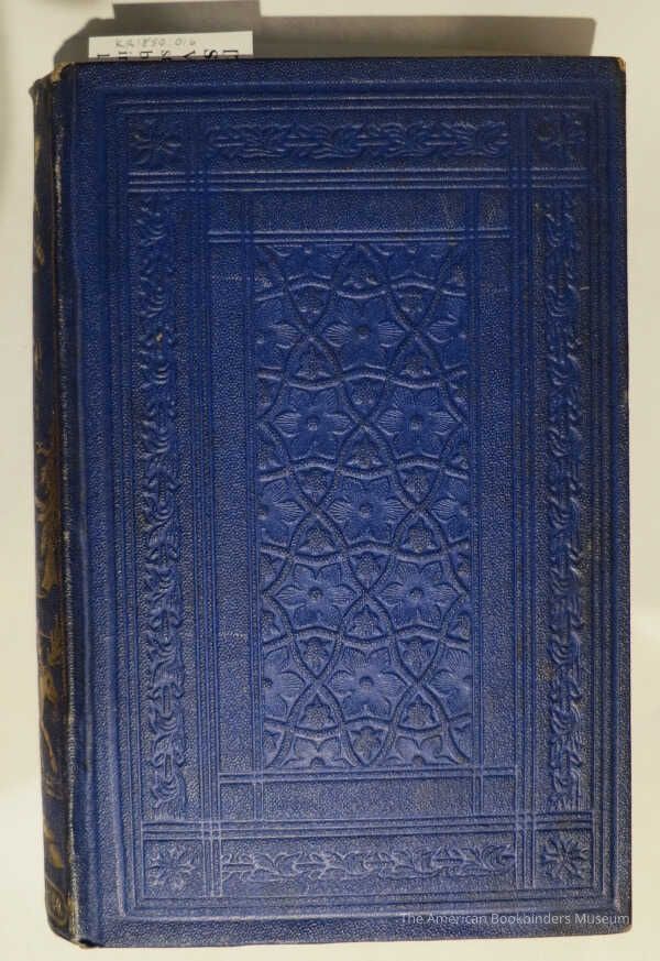 Bound in bright blue cloth with elaborate pictorial gilt stamped spine. Front and rear boards blind stamped in a Reid series uniform binding. Tissue guarded engraved frontis. Yellow endpapers. This series binding was published in the 1850's. Same binding issued in the 1860's.