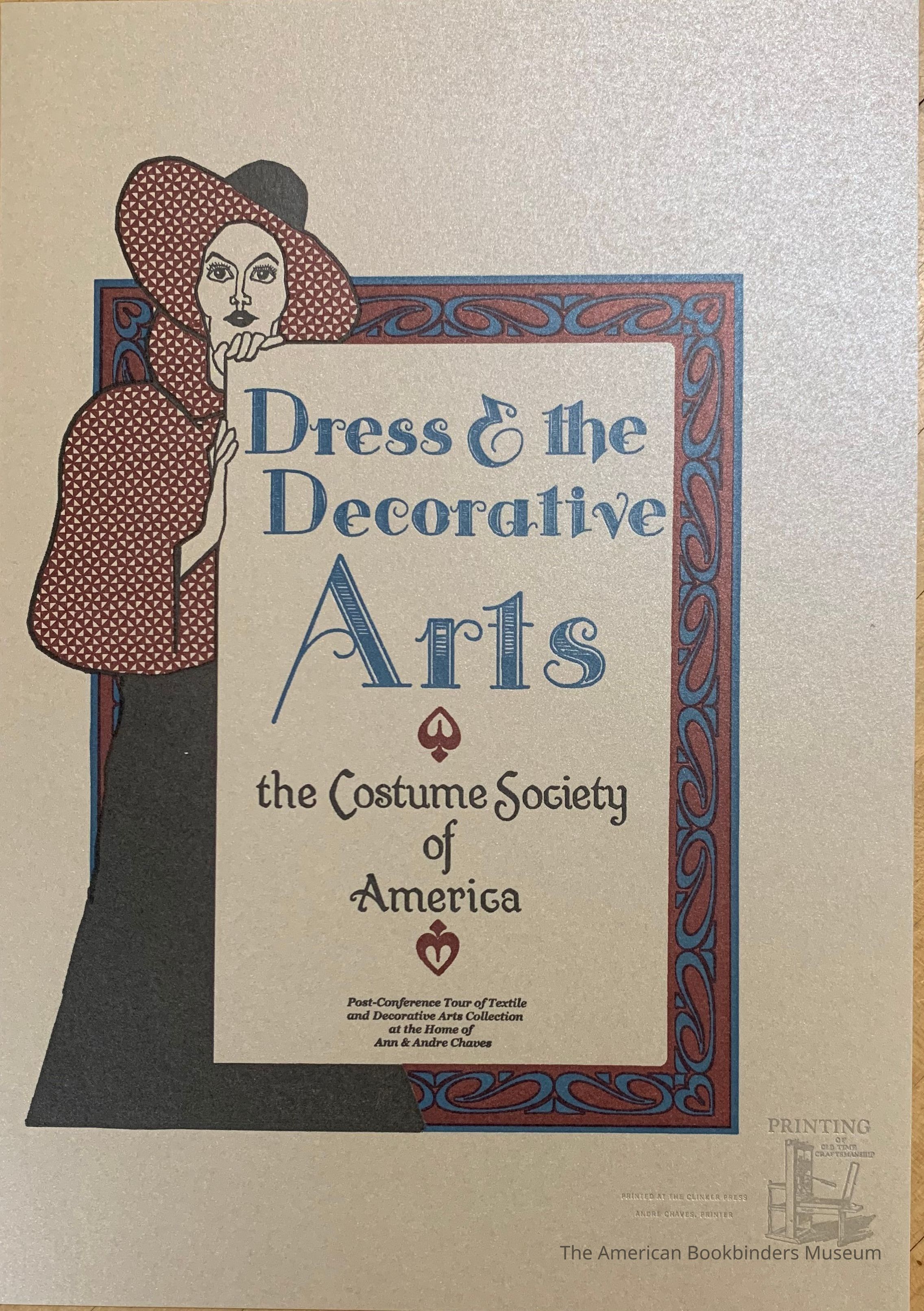 Event poster with image of a woman holding the title space, printed on shiny tan paper.Collection