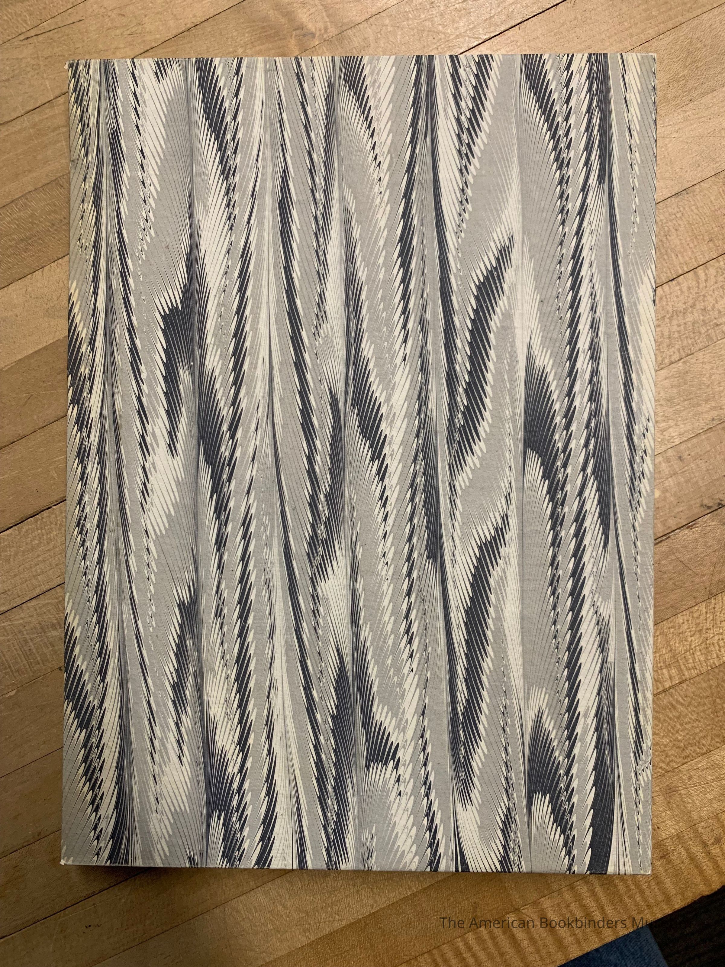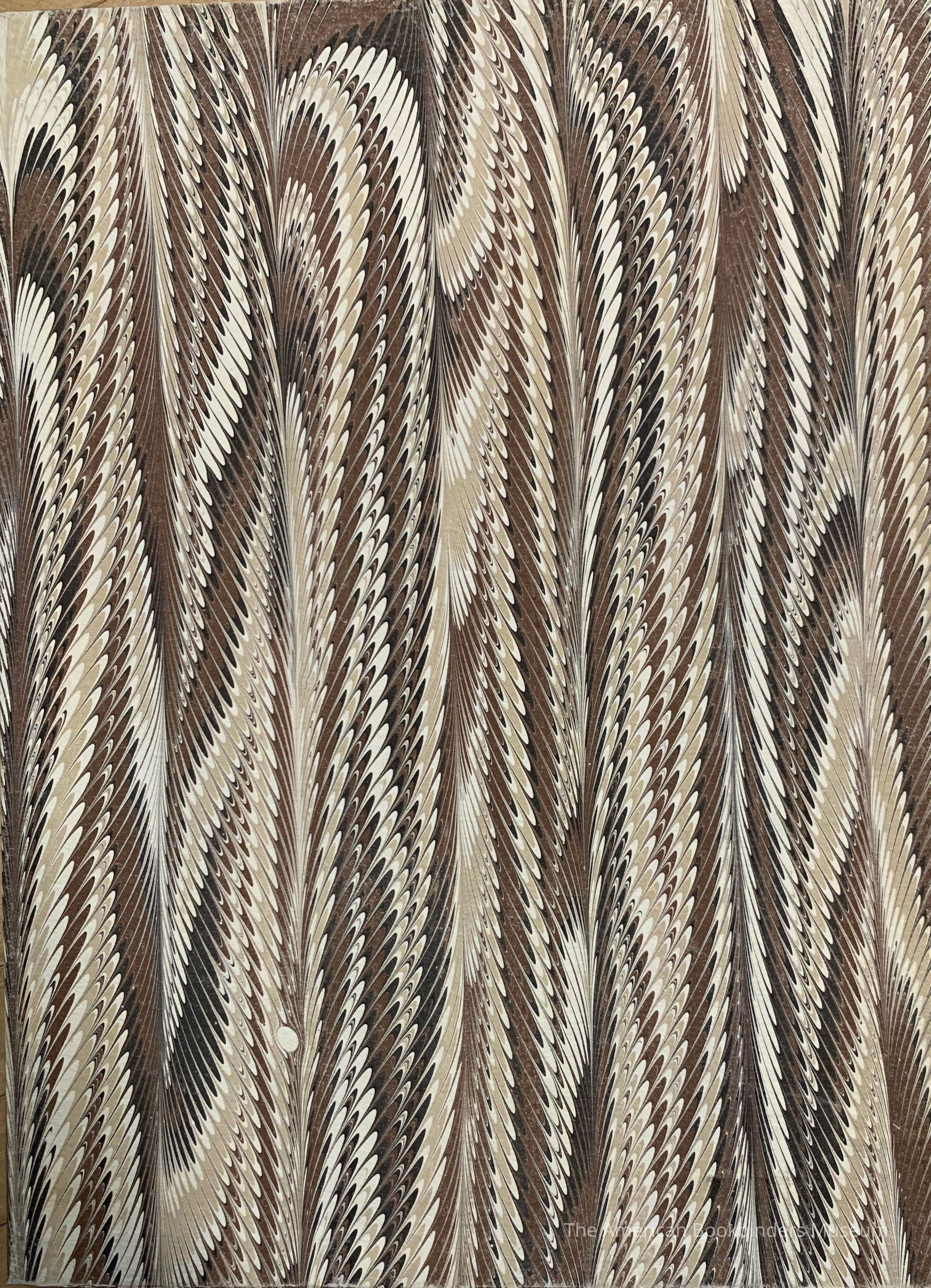 Slipcase covered in brown, tan and black Cockerell marbled paper