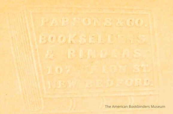 2. PARSONS & CO. BOOKSELLERS & BINDERS 102 UNION STREET NEW BEDFORD. Embossed