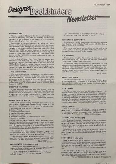 Designer Bookbinders newsletter; No.63; Summer 1988Entry/Object ID