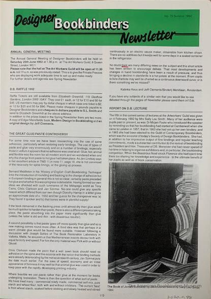 Designer Bookbinders newsletter; No.79; Summer 1992Entry/Object ID