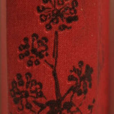 Bound in red cloth with black Japanese-inspired asymetrical floral design stamped in black. Black stamped geometric border to top and bottom. Motif repeated to spine. Wide gold title band to spine.Relationships