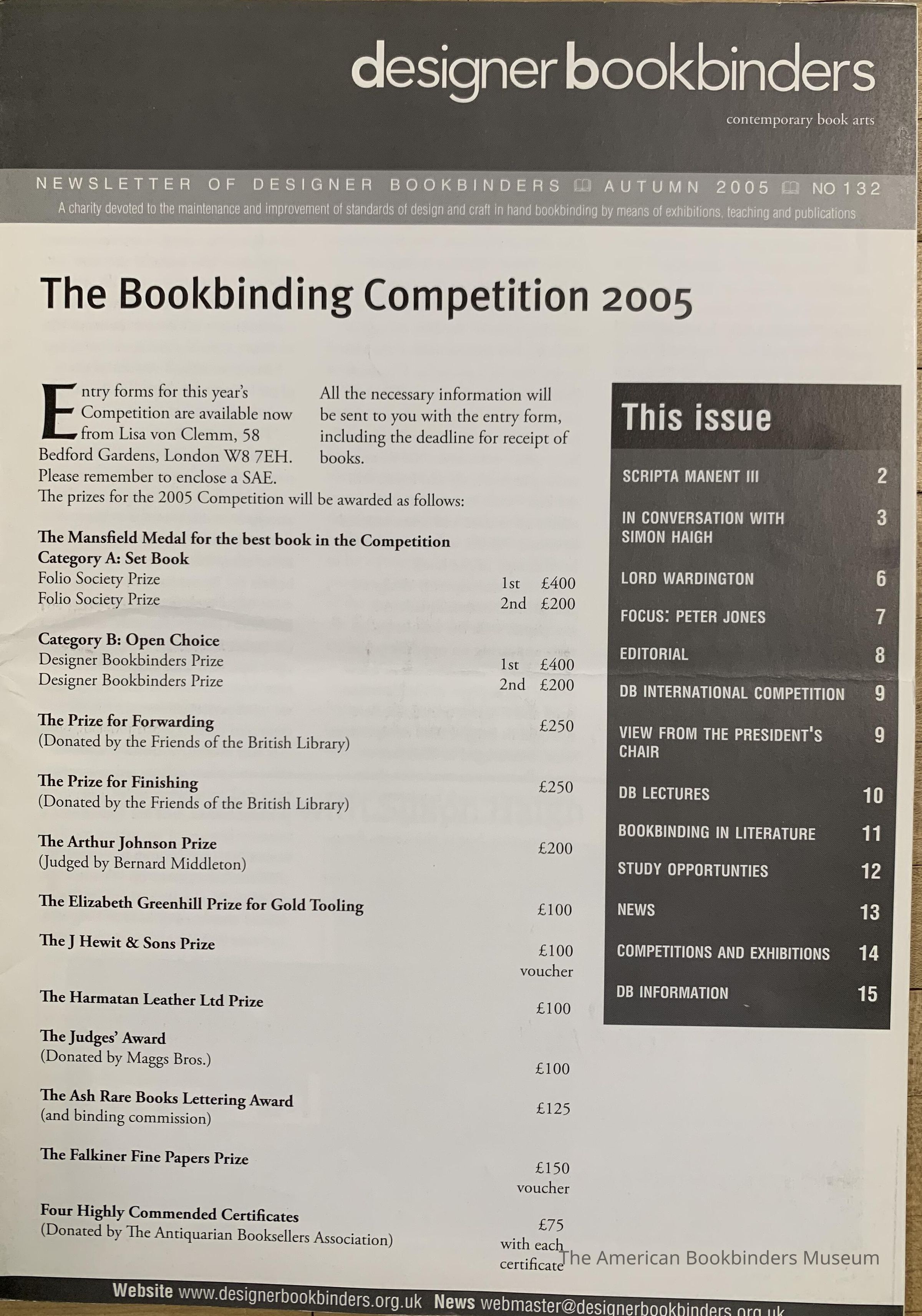 Designer Bookbinders newsletter; No. 132; Autumn 2005.Description