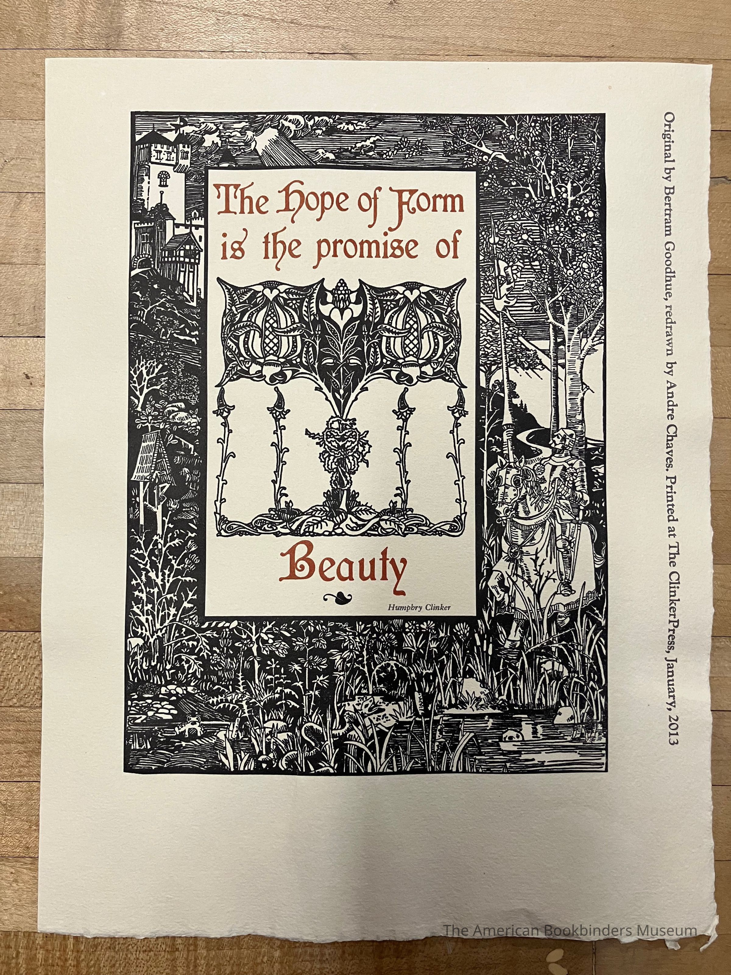Original by Bertram Goodhue, redrawn by Andre Chaves, printed at The Clinker Press.Dimensions