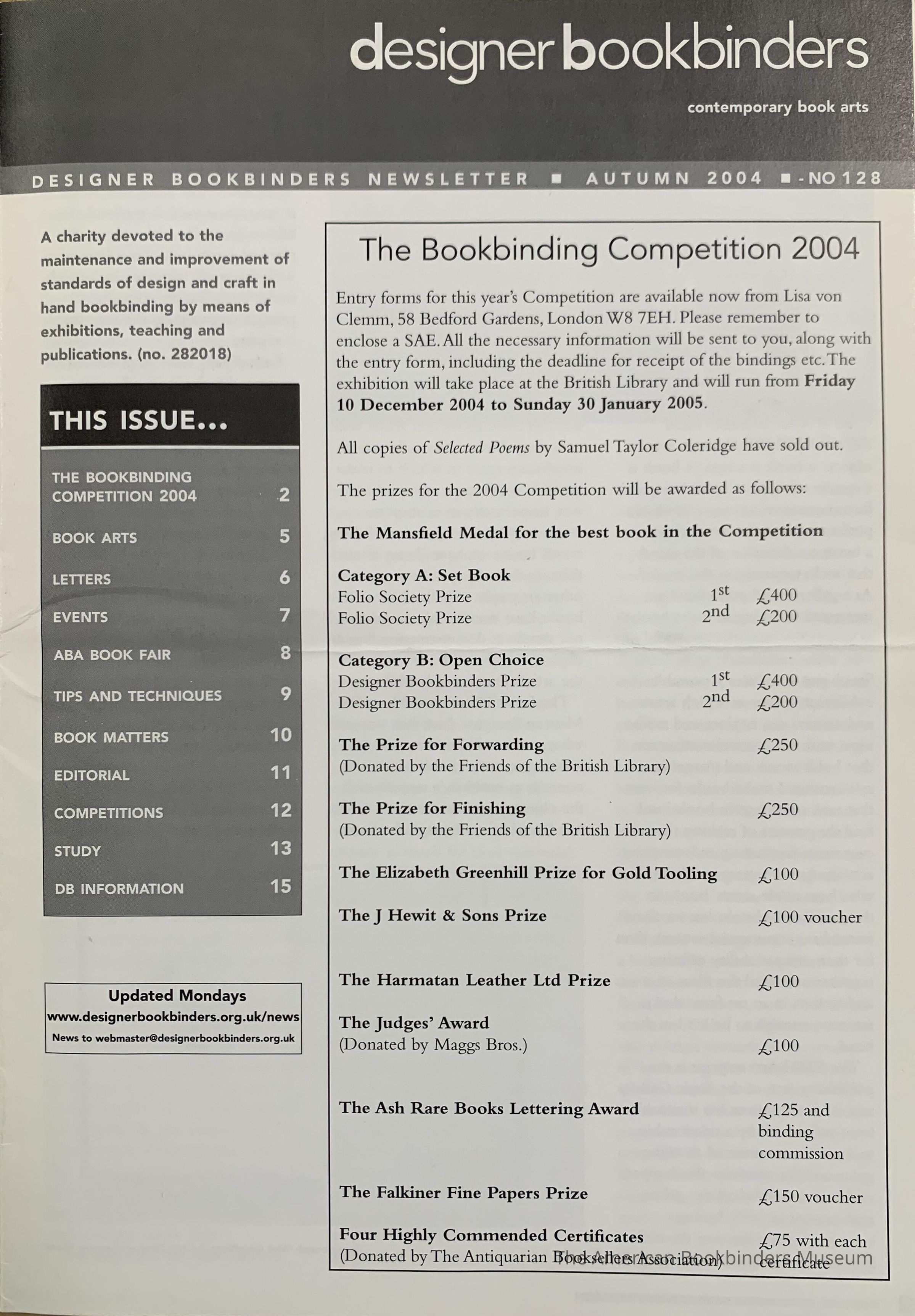 Designer Bookbinders newsletter; No. 128; Autumn 2004.Entry/Object ID
