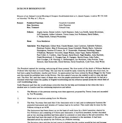 Note: Typo on title page identifies this as issue 10, instead of 9. Designer Bookbinders meeting minutes from Saturday 7th May inserted at center.