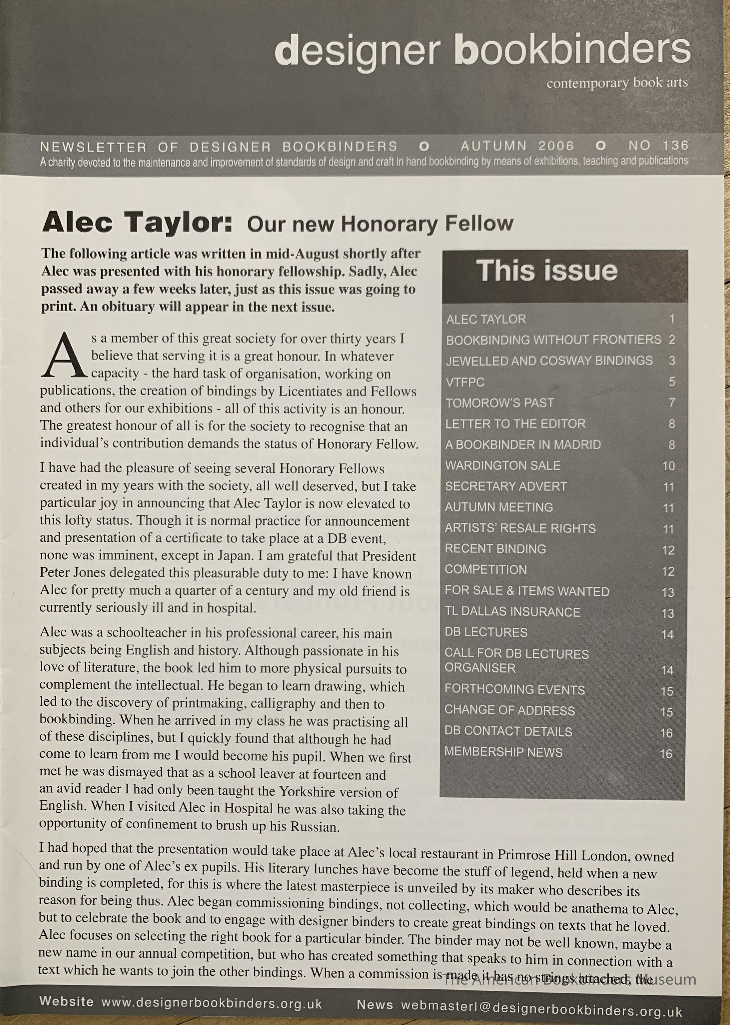 Designer Bookbinders newsletter; No.136; Autumn 2006Entry/Object ID