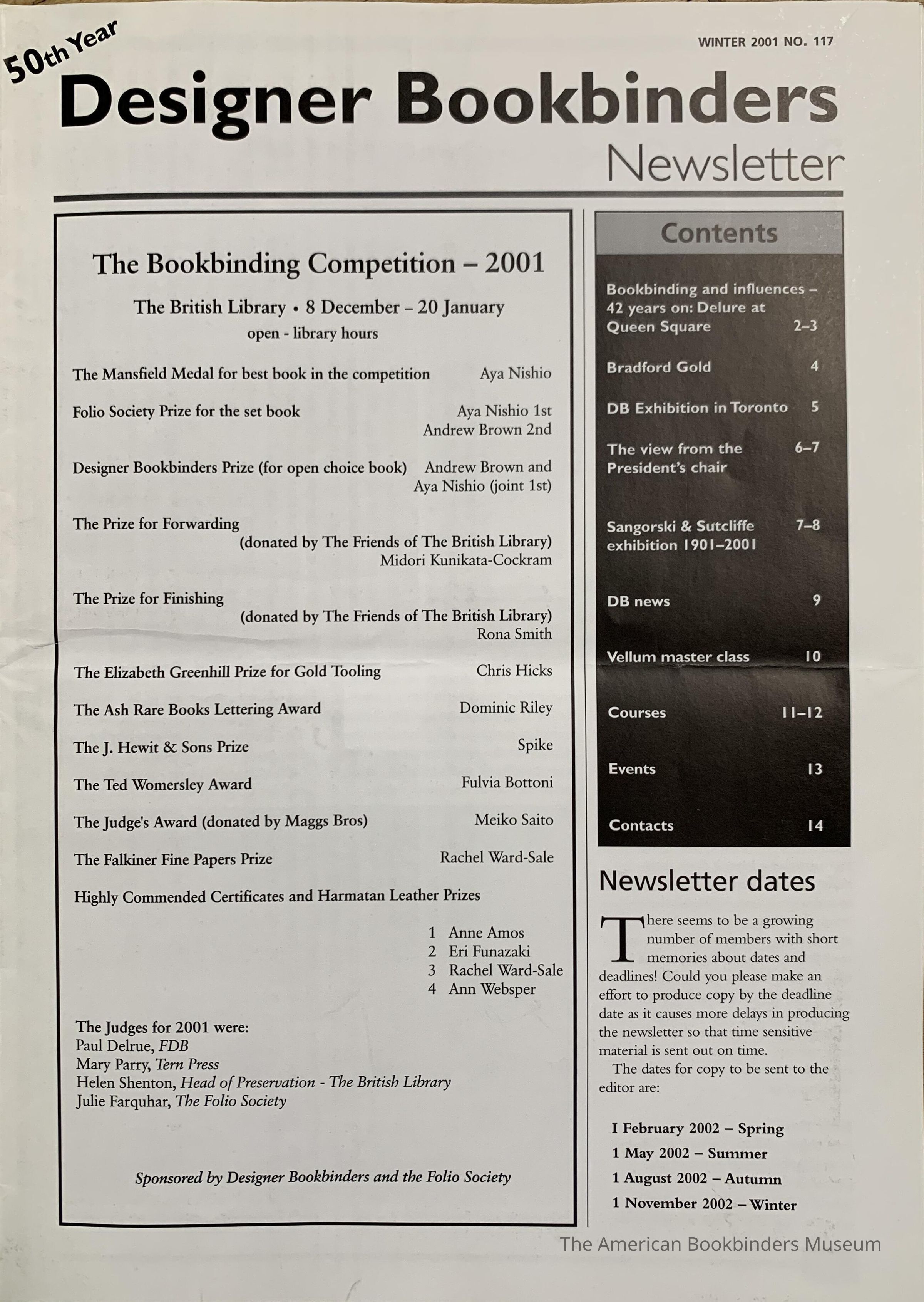 Designer Bookbinders newsletter; No. 117; Winter 2001.Entry/Object ID