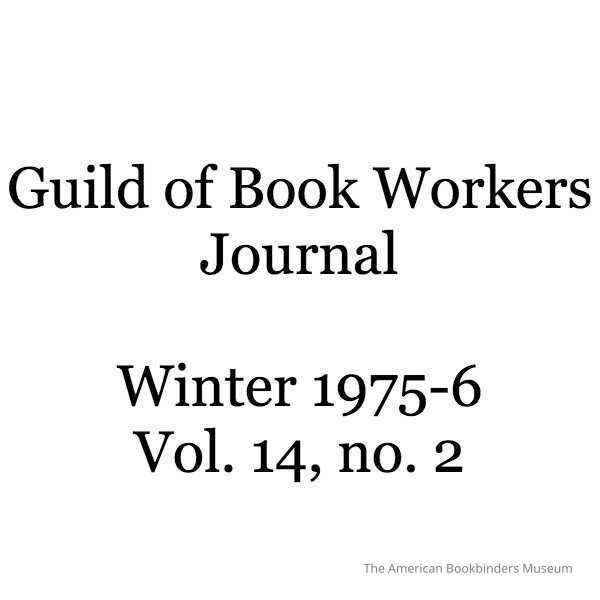 Guild of Book Workers journal. Winter 1975-6; v.14 no.2