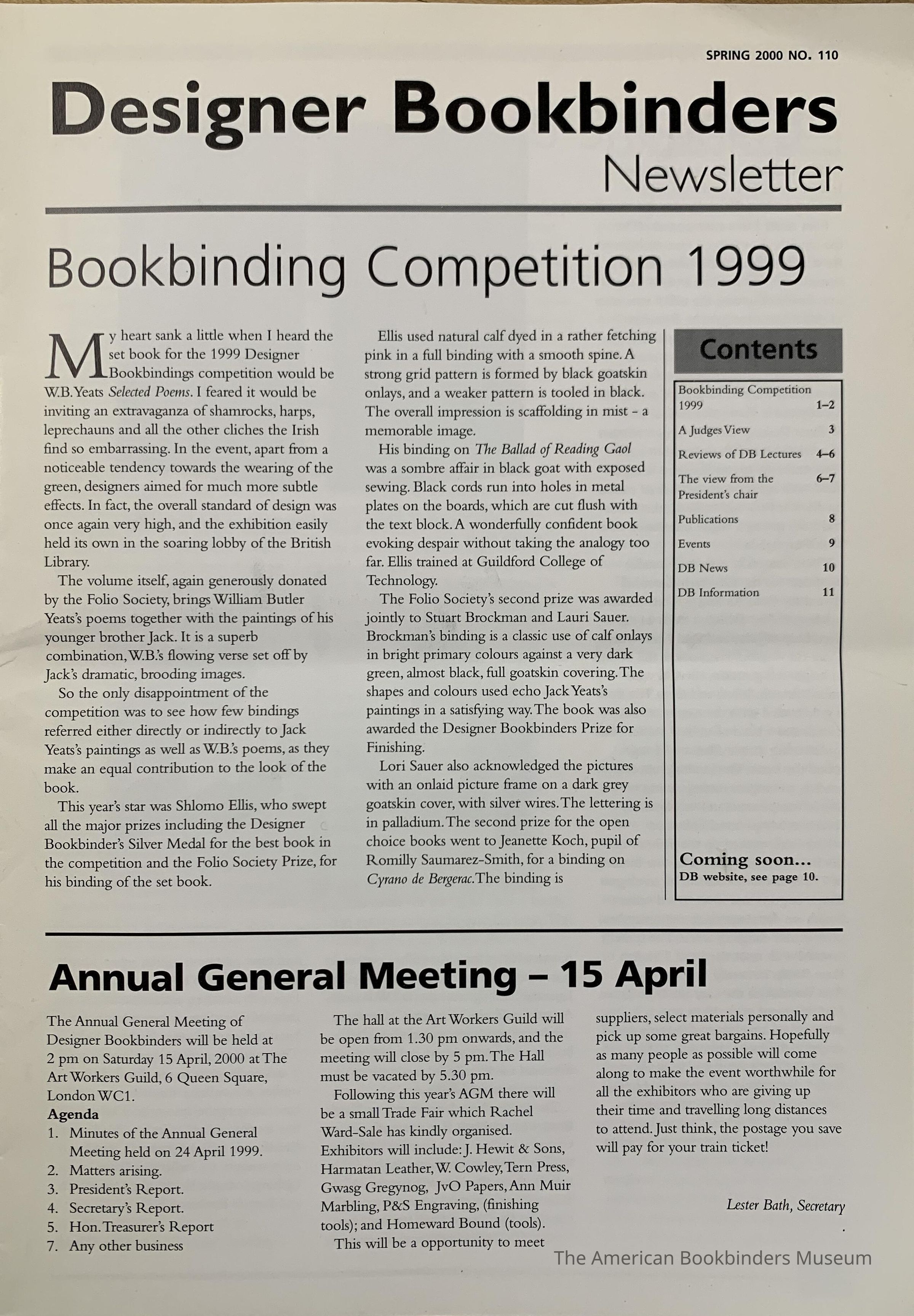 Designer Bookbinders newsletter; No.110; Spring 2000.Entry/Object ID