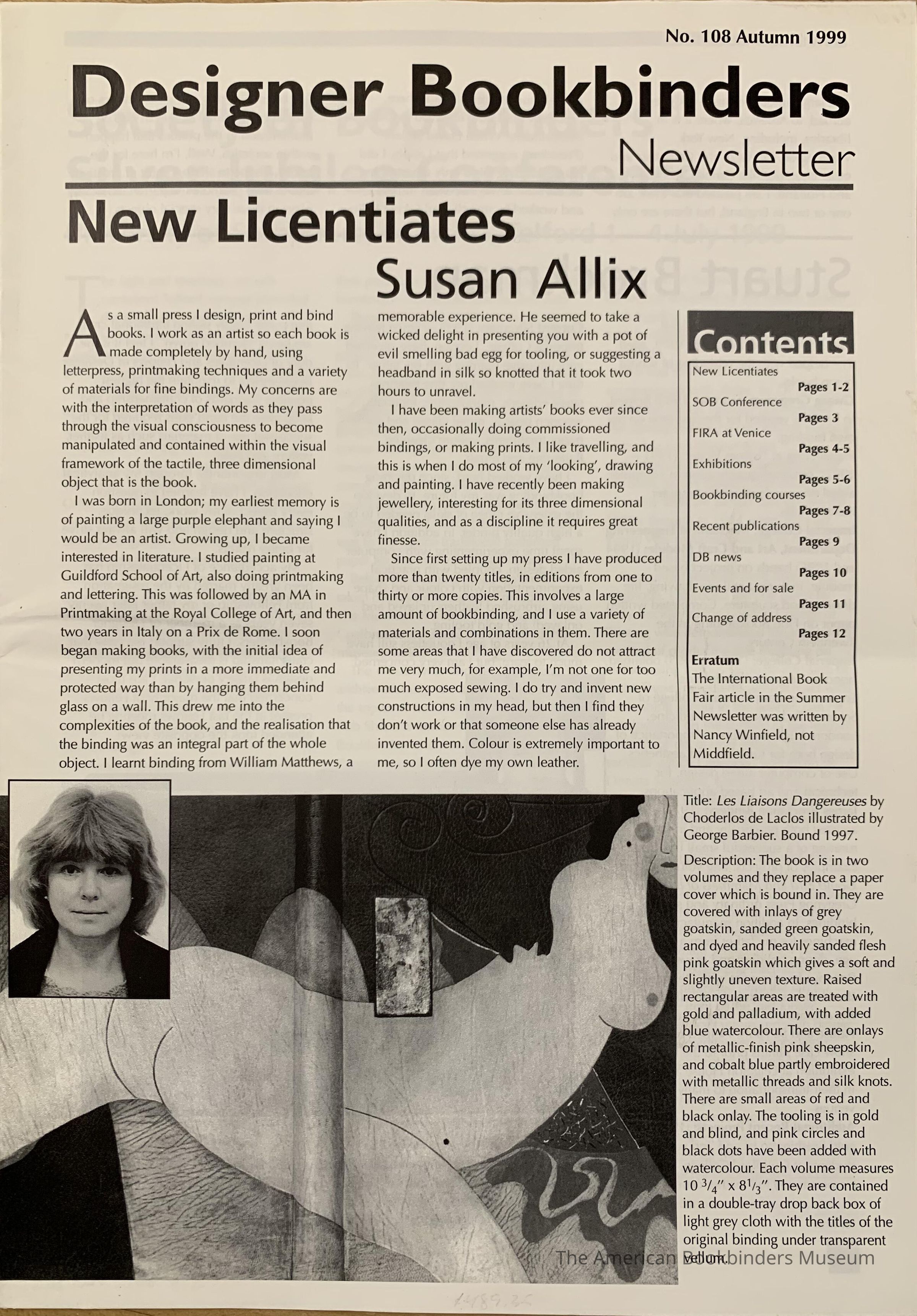 Designer Bookbinders newsletter; No.108; Autumn 1999.Entry/Object ID