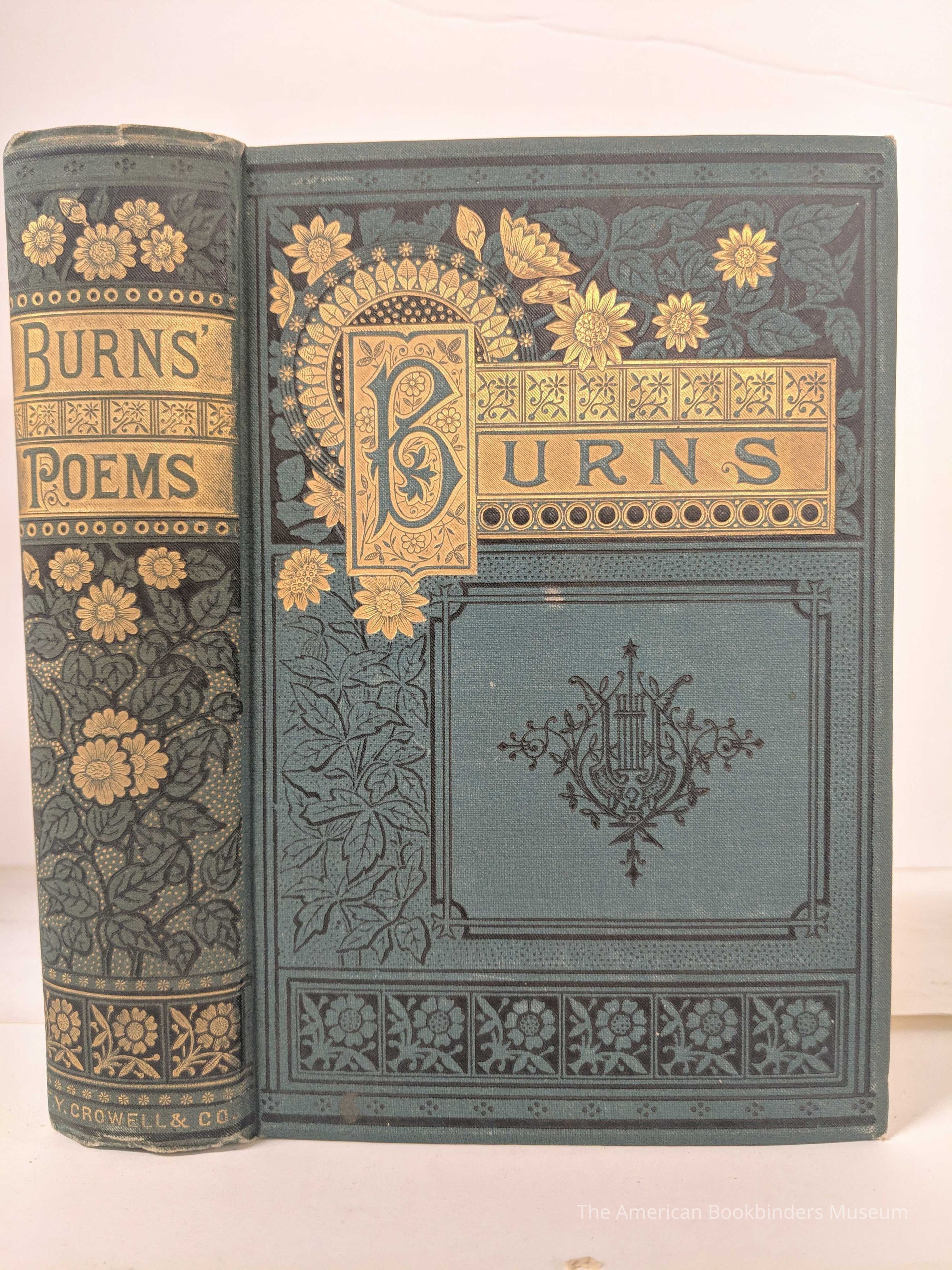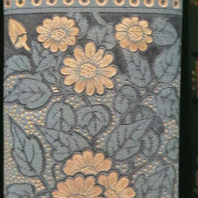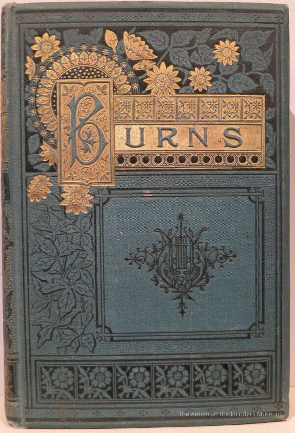 Bound in teal beveled cloth with black and gilt stamping. Cover stamped in a floral and geometric paneled design with elaborate gilt embellished title panel. Spine has wide gilt stamped title band and gilt flowers and stippling. Yellow endpapers. All edges gilt.Notes