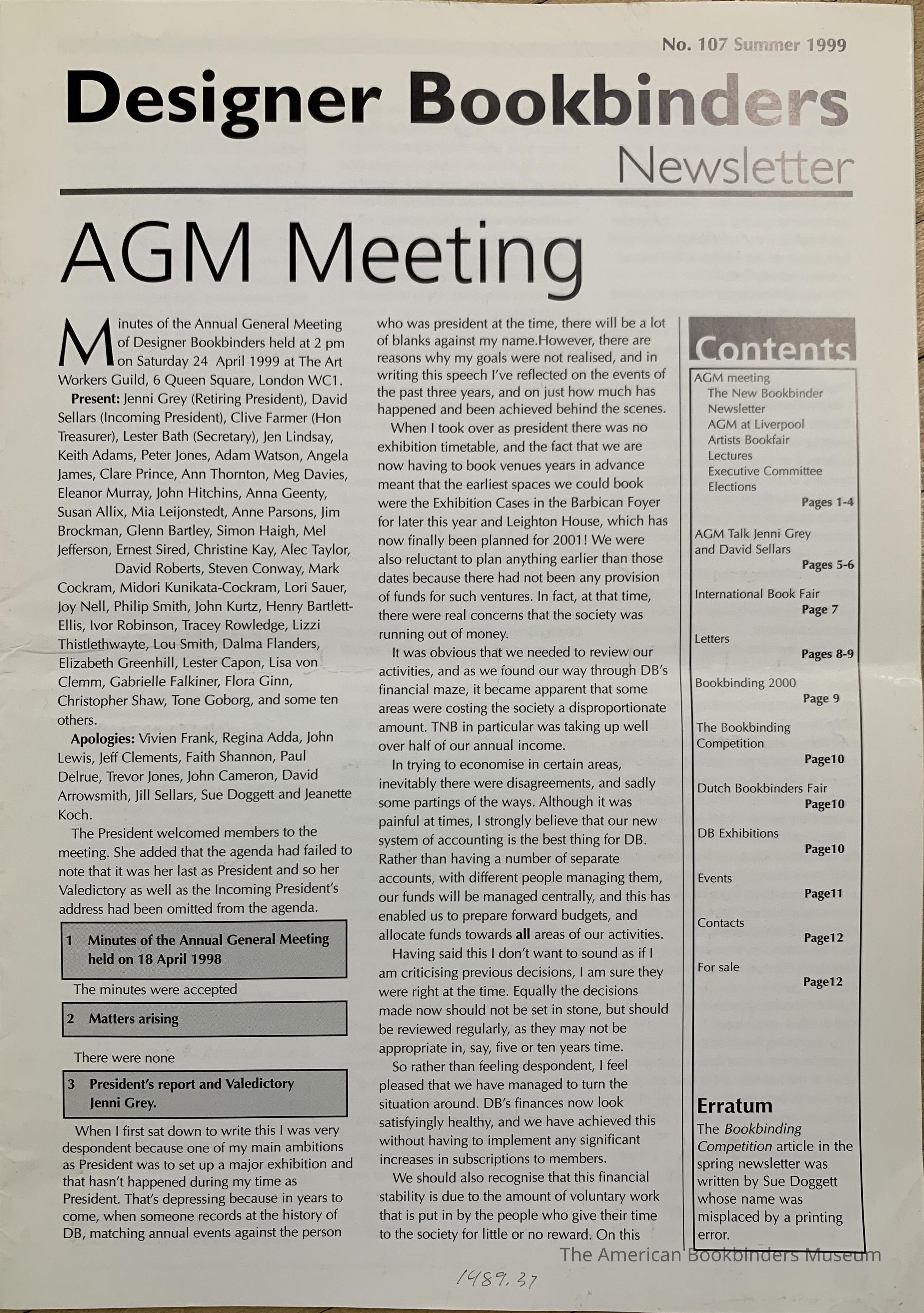 Designer Bookbinders newsletter; No.107; Summer 1999.Entry/Object ID