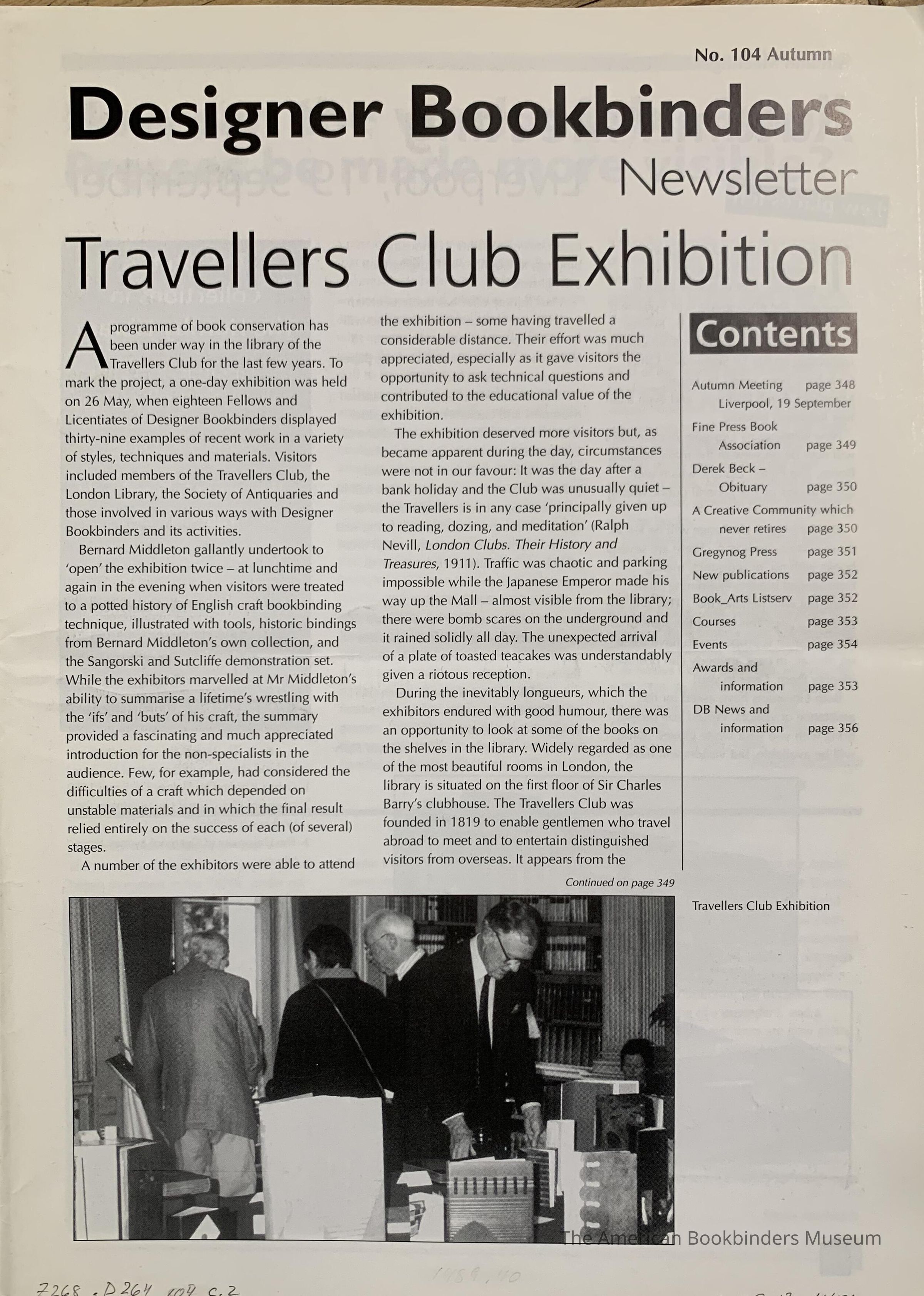 Designer Bookbinders newsletter; No. 104; Autumn 1998Entry/Object ID