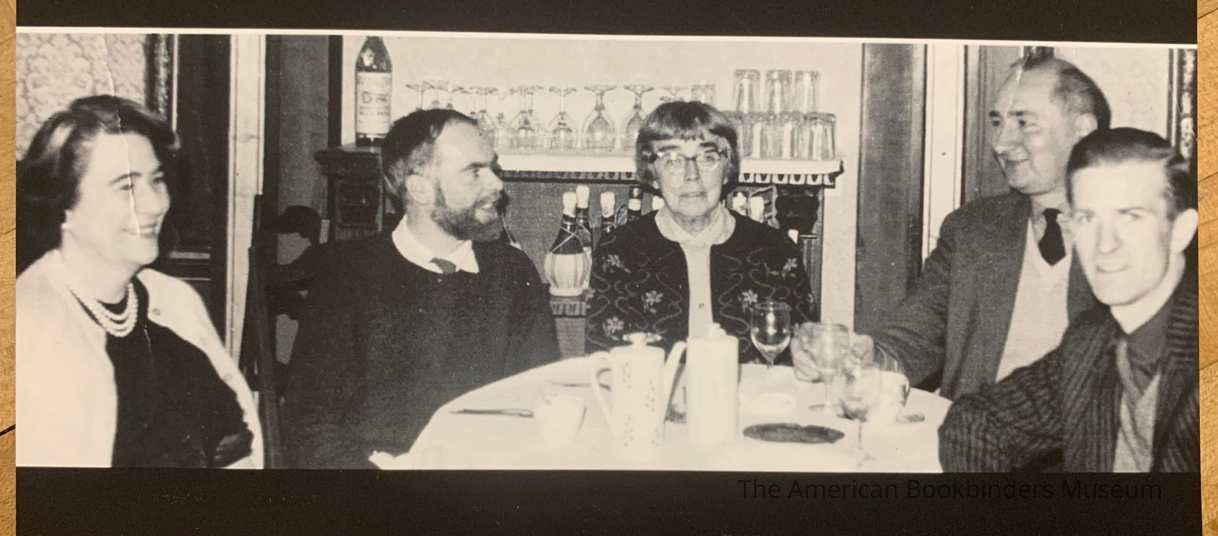 A photo and a print of a photo by Margaret Johnson at a dinner party with Stella Patri. Philip Smith is sitting to her right and Bernard Middleton to her left.Photograph Details