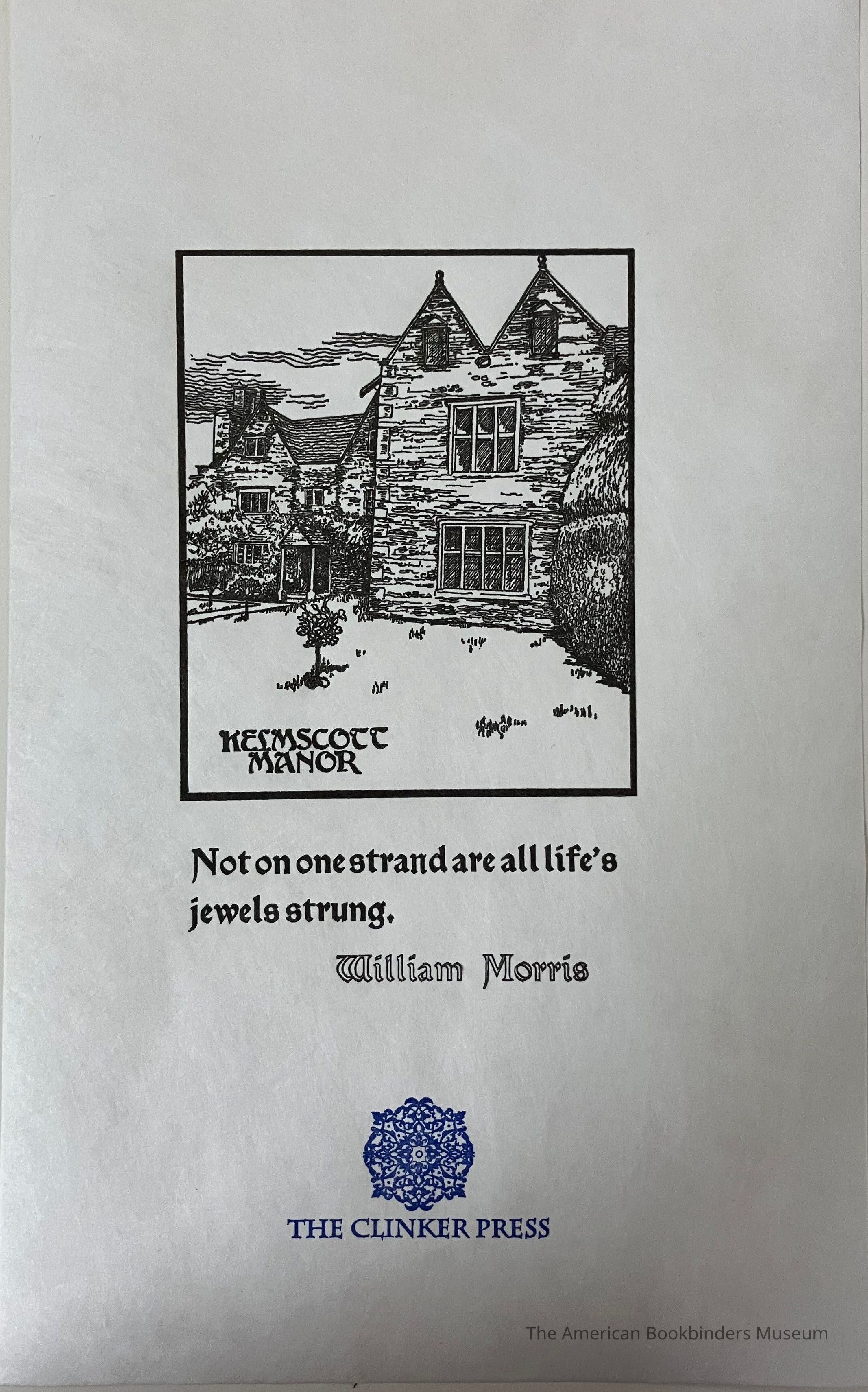 A quote from William Morris under a print of Kelmscott Manor.Collection