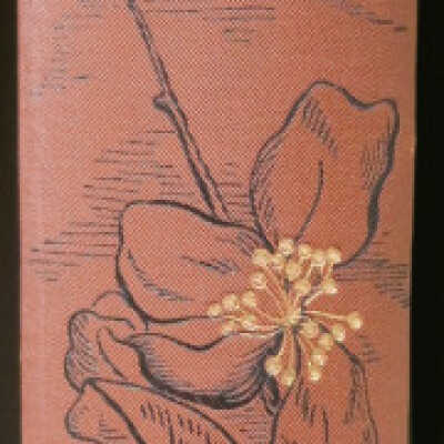Bound in dark brown beveled cloth with magnolia flowers within a ruled panel, stamped in black with gilt stamped stamens. Title band in matte and bright gilt against a background of leaf and flower. Motif repeated to spine. Black stone endpapers. All edges gilt.