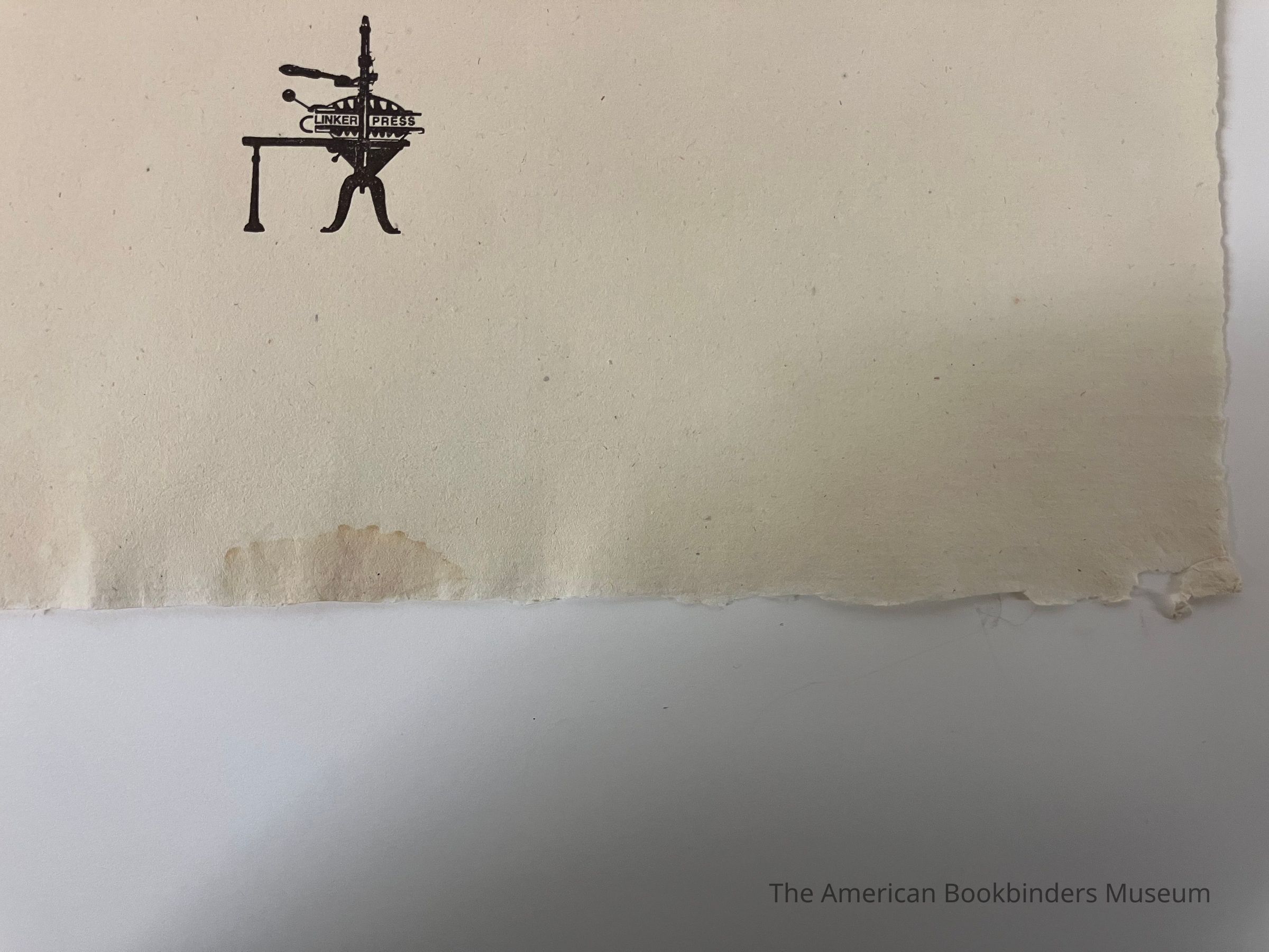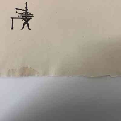 Illustration of C. R. Ashbee in the top left, with his name below with a drop cap 'A'. Text begins to its right and continues to be centered. Cream paper. Black ink. Right and bottom edge have a small ripple and is raw. Thin paper with small dots visible.Collection