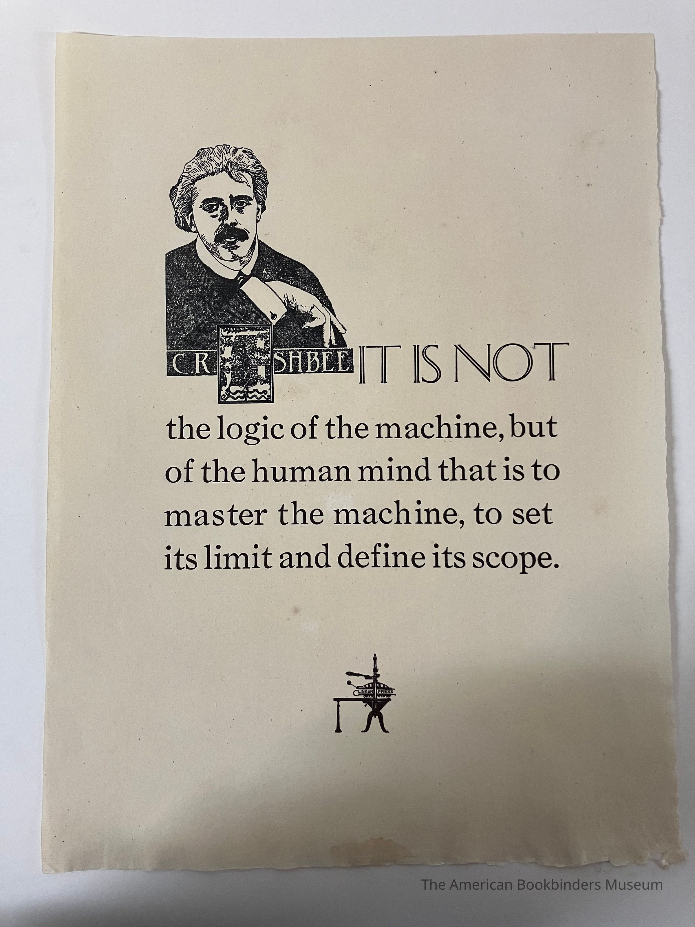 It is not the logic of the machine, but of the human mind ... / C. R. AshbeeEntry/Object ID