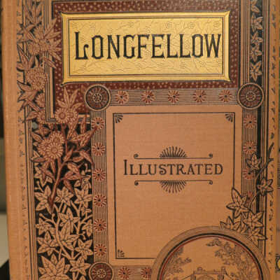 An extremely popular binding design of the 1880's. which was issued by multiple publishers with minimal changes. Note similarity to Tennyson, published by Nims and Knight. Note also the success of this lighter brown cloth choice for Longfellow compared to the darker green cloth color issued two years later by the same publisher.Collection