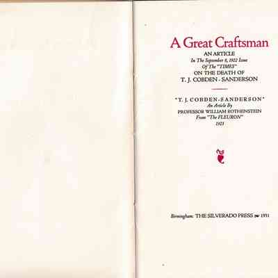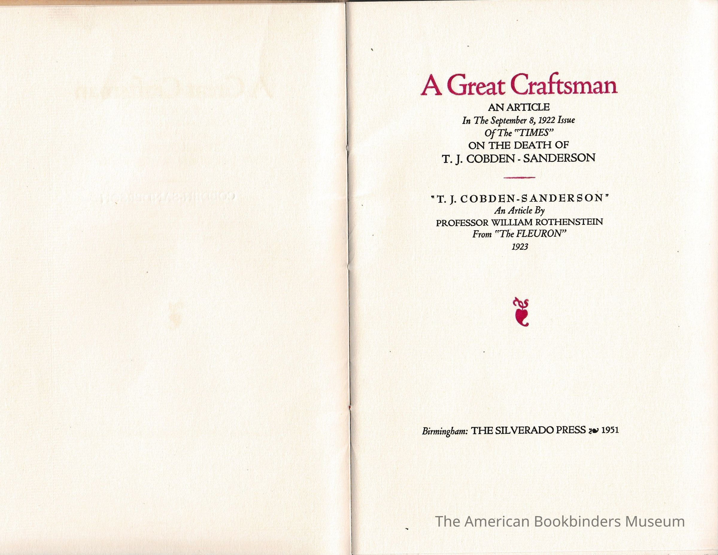 The first productions of the Silverado Press were three original letters of T.J. Cobden-Sanderson.Collection