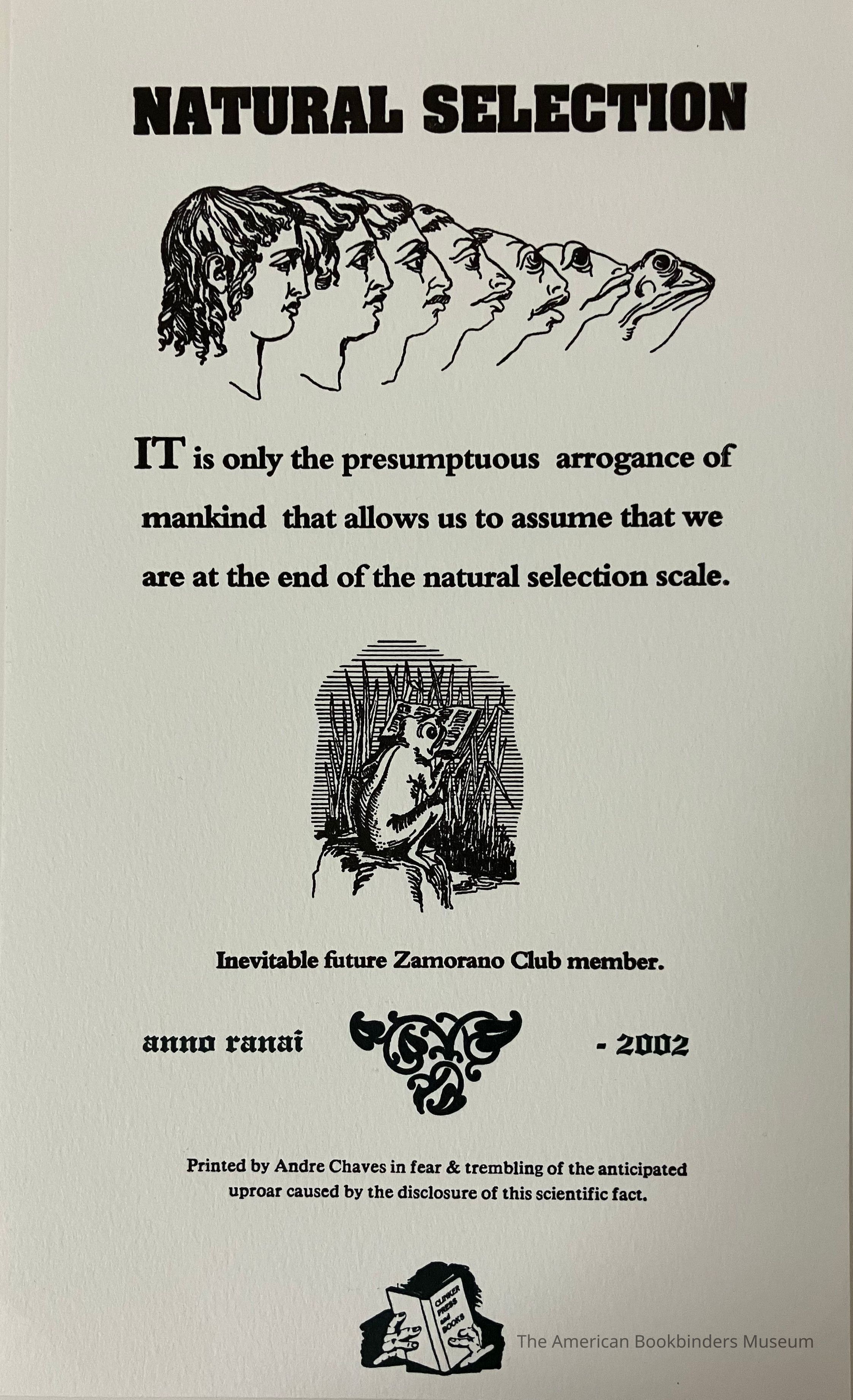 A page showing humans evolving into a frog-like animal, with accompanying text.Collection