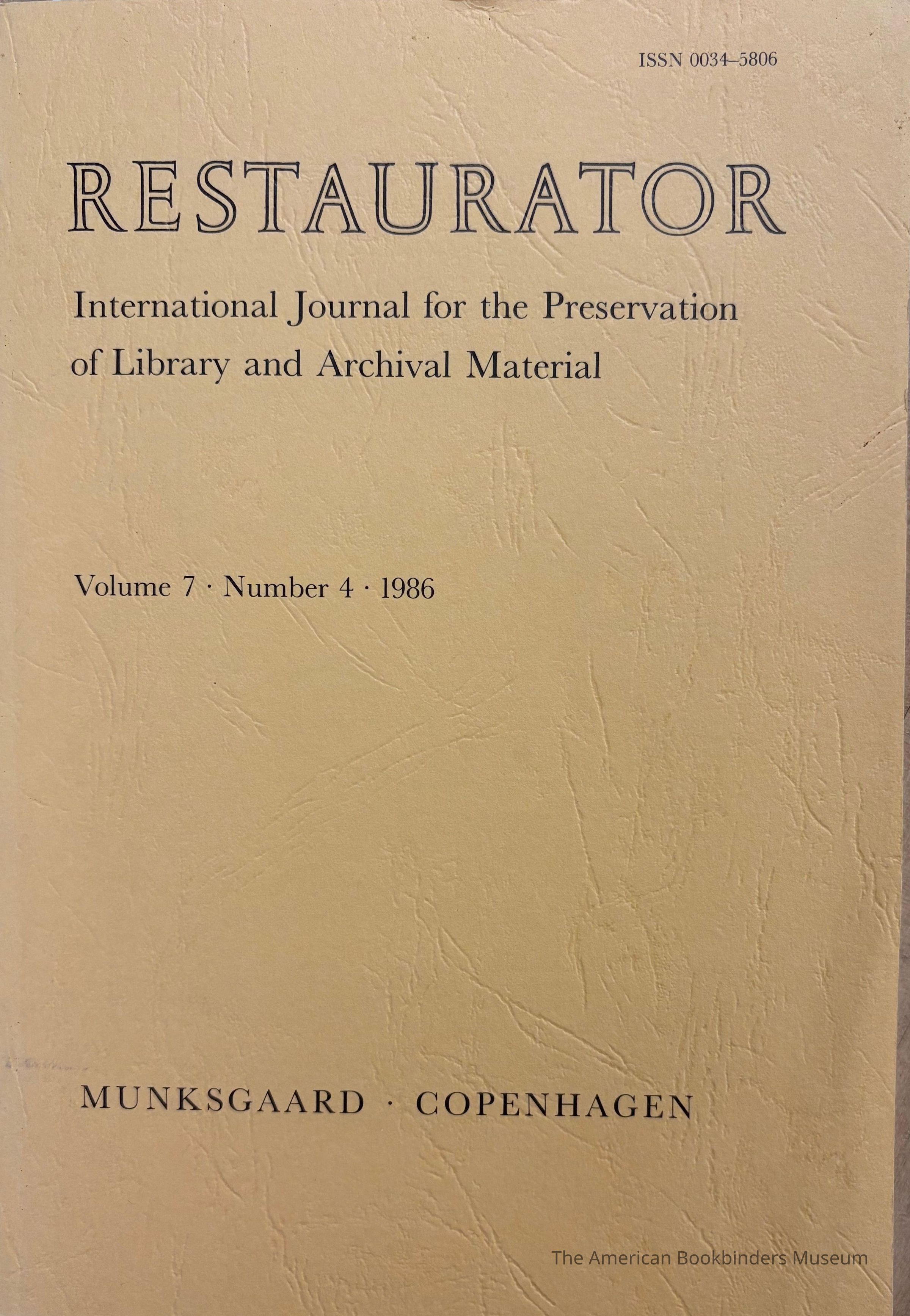 Restaurator. Vol. 7 no.4 : 1986Entry/Object ID