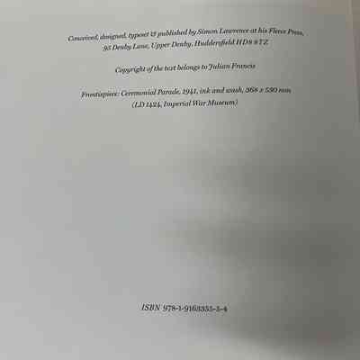 Colophon at back - 330 copies, quarter bound in cloth with Louise Brockman’s marbled paper. Bound by Ludlow Bookbinders. Images prepped by Ian Wright Creative. “Kieth Stubbley & Emma Nunnington saw it through the press at my old friends Northend in Sheffield, who printed it on Sunken Pure undated paper.”