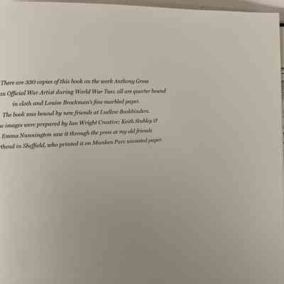 Cover has a cloth covered spine in dark red, with marbled paper. End sheets show maps of the Middle East and the eastern part of the Indian subcontinent showing Burma (now Myanmar). Book is on the work of Anthony Gross as Official War Artist during WW2.