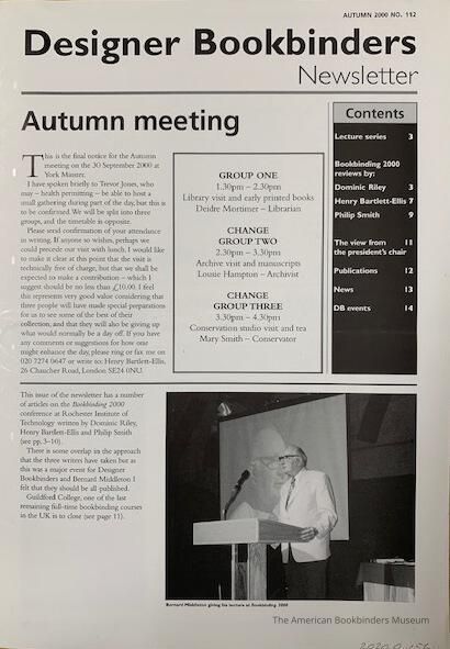 Designer Bookbinders newsletter; No.112; Autumn 2000Entry/Object ID