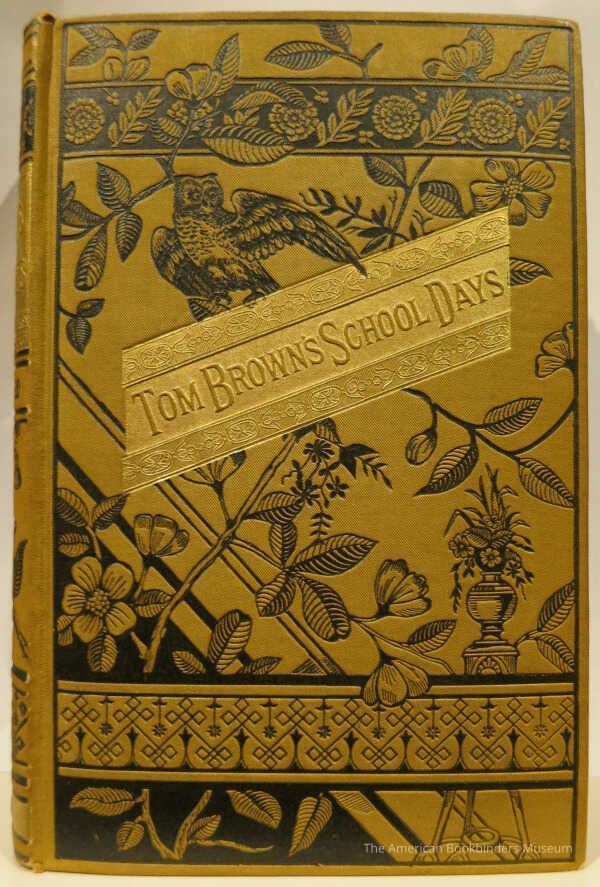 Mustard cloth with elaborate black stamping to cover and spine of a bordered Asian-inspired leaf, branch, and flower design with a diagonal orientation. Urns with flowers, an owl, and a gilt stamped title ribbon band to the cover. Cover stamping fills the entire board. and spine. Spine has a wide title band stamped in gilt. Yellow endpapers.Notes