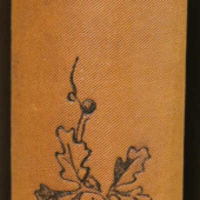 Bound in mustard cloth with black stamping to cover of an Australian scene of a lurking animal watching a resting group of cattle. Spine black stamped in a leaf and acorn design with wide gilt title band. Plain endpapers.