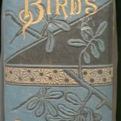 Stamped in black and gilt on deep blue cloth. Beveled edges. Highly decorated gilt spine with a diagonal embossed design depicting a small songbird within the title, a gilt heron at the bottom, and a soaring hawk at the top. Floral endpapers. Top edge gilt. The front cover in a ruled black border, continues the diagonal design with a songbird sitting on a branch in silhouette against a gilt sun.Relationships