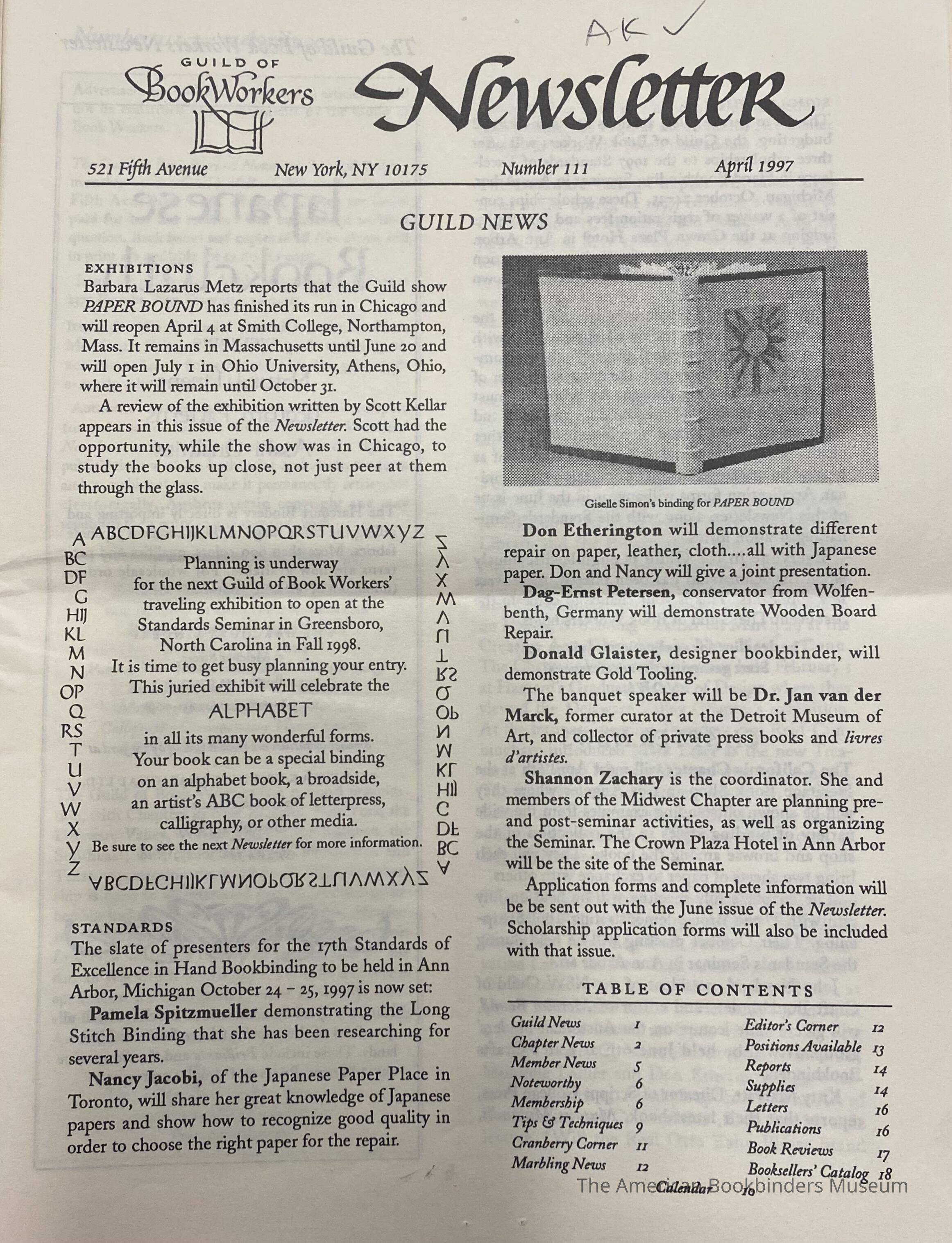 Guild of Book Workers Newsletter ; Number 111 , April 1997Entry/Object ID