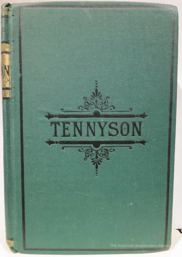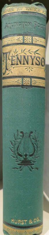 Bound in green cloth in a much more simplified design with "Tennyson" black stamped to center of cover with a simple Eastlake surround. Spine also simplified with black stamped classical harp and title name within a 3 part wide gold band. Series name of "Arlington Poets" stamped to top of spine. Publisher's name: "HURST & CO." stamped to bottom of spine. Pink endpapers. All edges gilt.Notes