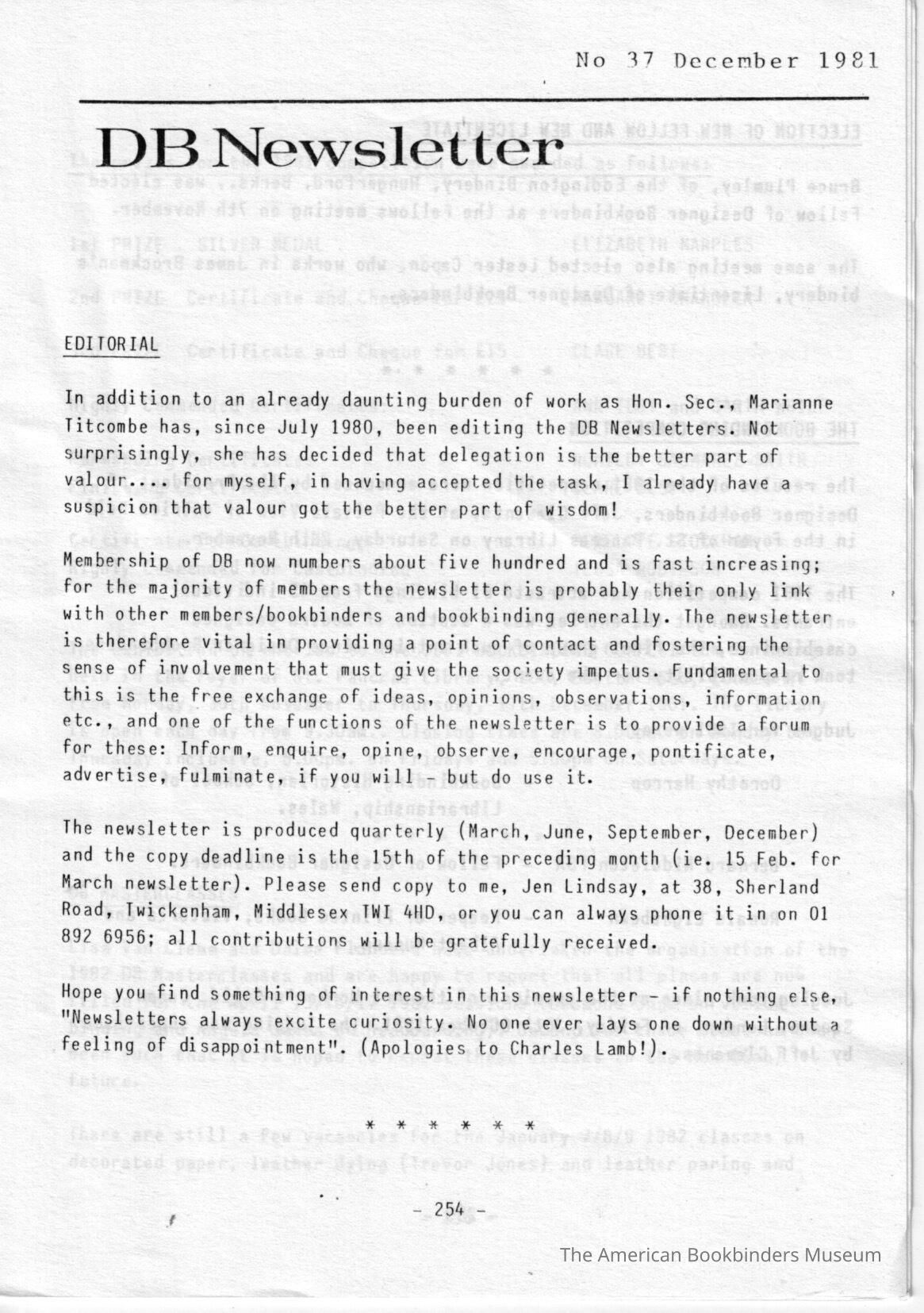 DB Newsletter; No. 37 December 1981Entry/Object ID