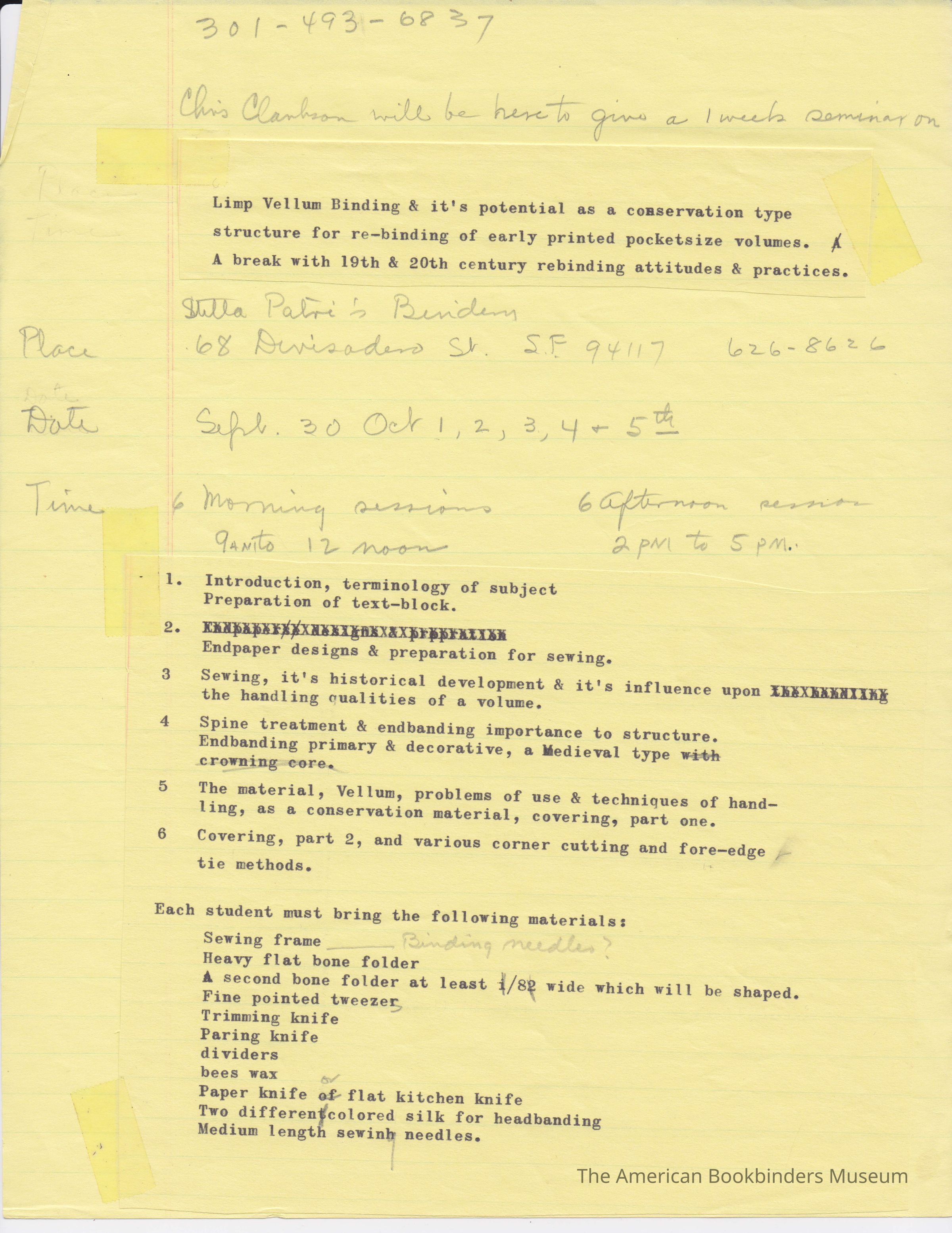 Drafts for the syllabus for Chris Clarkson and Patri's limp vellum binding courseEntry/Object ID