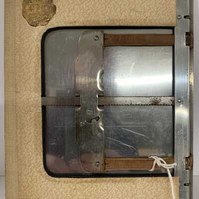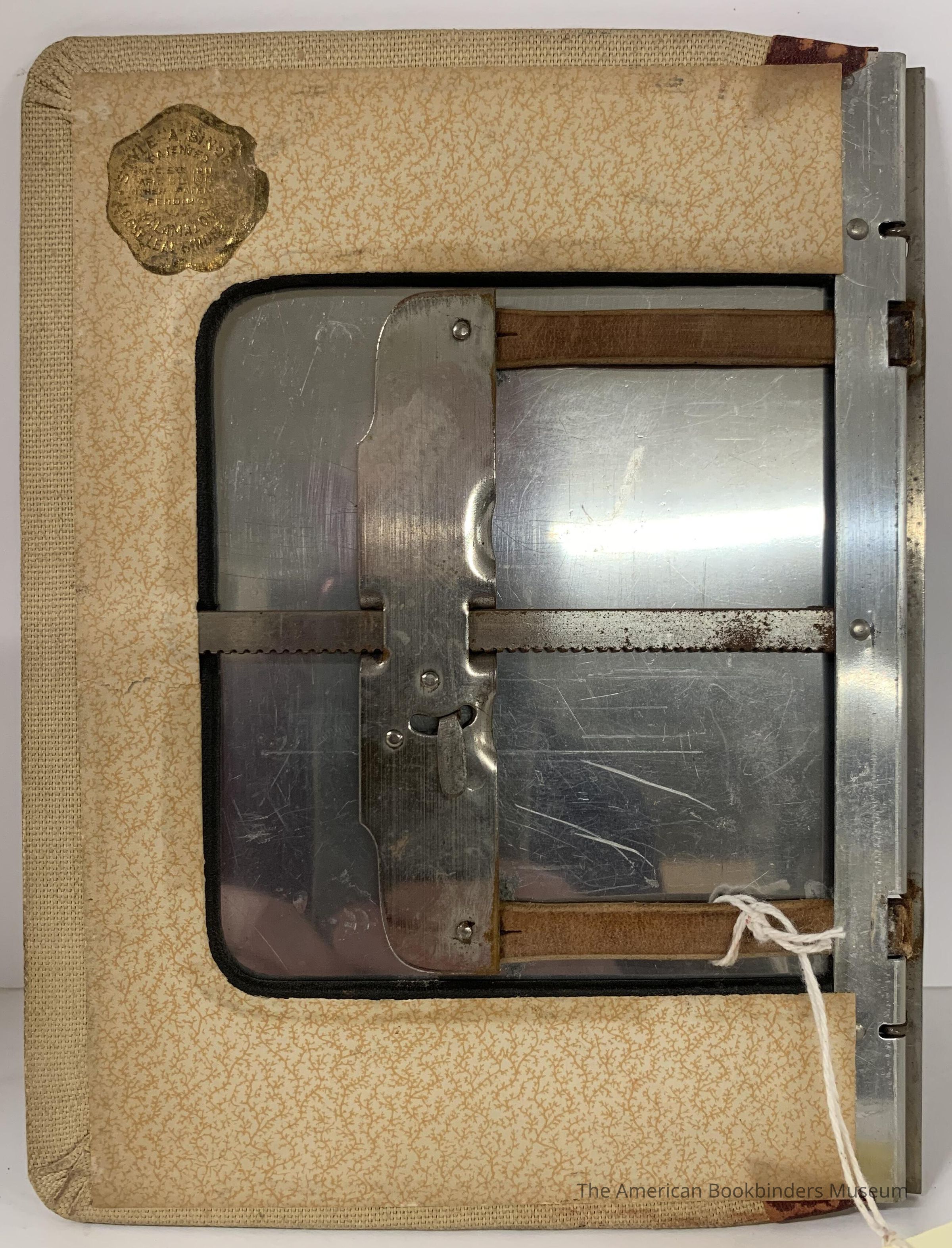 Front and back cover of looseleaf binder; spine connecting leather straps missing